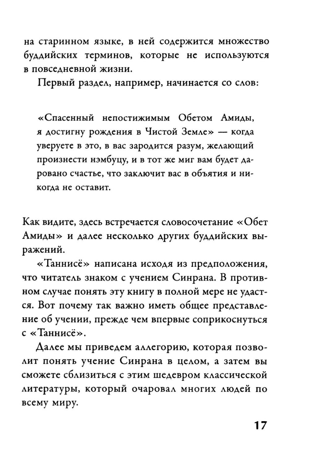 Буддизм. Послание «Таннисё» - книга об учении буддийского мастера Синрана, которая, как считается, написана его учеником Юйэном примерно семьсот лет назад. Это произведение поражает не только певучей, лирической прозой, но и глубокими воззрениями на человеческую природу, видением жизни и смерти. За последние сто пятьдесят лет в Японии было издано более пятисот книг, так или иначе посвящённых «Таннисё» - труду, завоевавшему сердца широкого круга читателей: буддийских учёных, писателей и философов. В данной книге автор приводит аллегорию, которая помогает понять учение Синрана в целом, а затем цитирует шедевр классической литературы, очаровавший людей по всему миру. Перевод с японского Илоны Якименко.| Издательство | Гиперион |