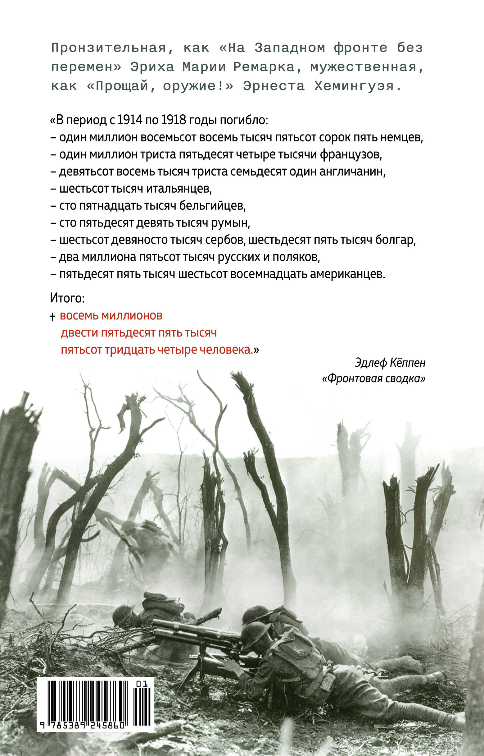Опубликованные в 1930 г. "Будни добровольца: в окопах Первой мировой" стали одним из знаковых романов о Первой мировой войне, наряду с произведениями Э.М. Ремарка "На Западном фронте без перемен", Р. Олдингтона "Смерть героя" и Э. Хемингуэя "Прощай, оружие!". Участник Первой мировой войны, ушедший на фронт добровольцем с третьего курса философского факультета университета, Эдлеф Кёппен создал "монтажный роман", где оригинальные документы - цитаты из воззваний императора Вильгельма II, указы цензурных органов, газетные сообщения органично вплетены в сюжет, а прообразом главного героя Адольфа Райзигера является сам автор. "Будни добровольца: в окопах Первой мировой" стала одной из десятков тысяч книг, публично сожженных в Германии в 1933 году, и не публиковалась в ФРГ до 1976 г., а в ГДР до 1981. В начале века роман вновь привлек к себе внимание, был многократно переиздан и переведен на несколько языков.| Издательство | Азбука-Аттикус Издат.группа ООО |