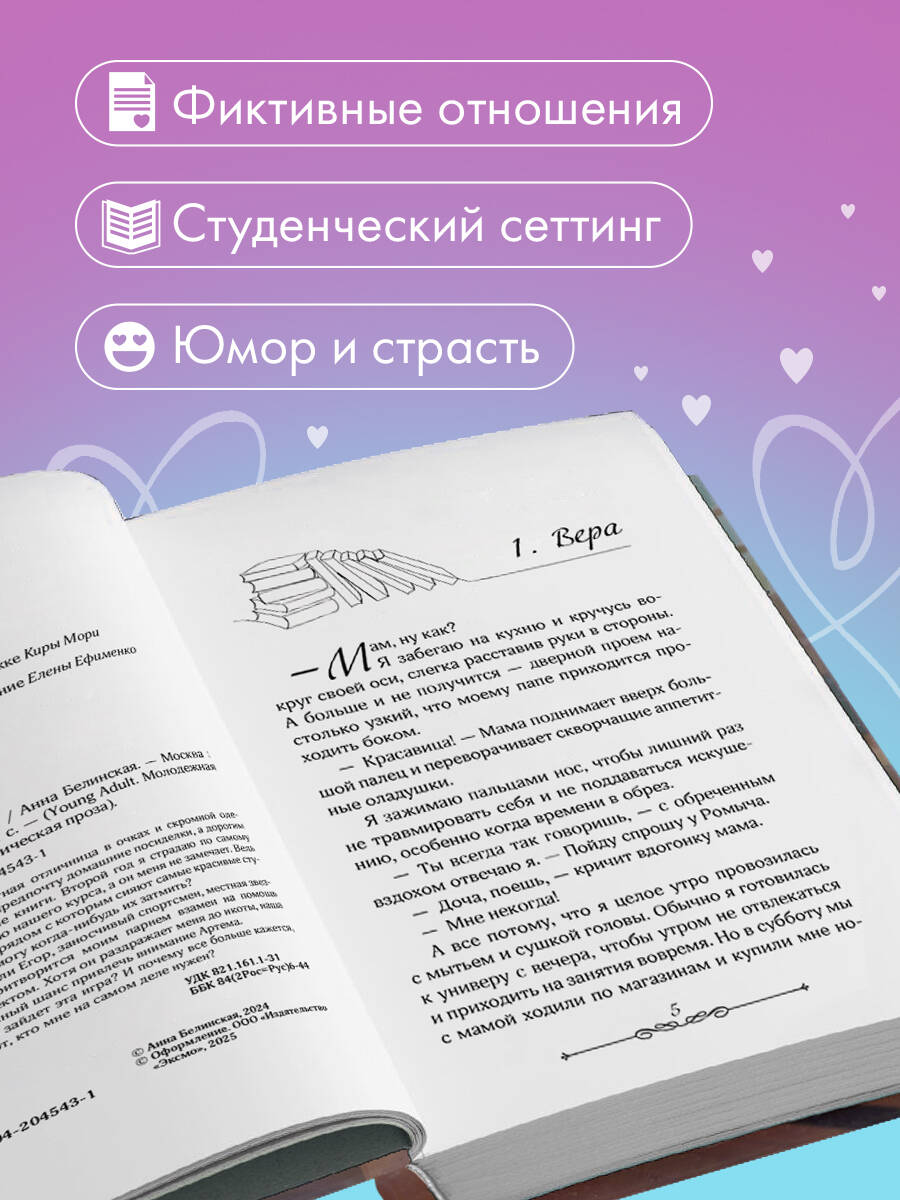 Романтическая история о студенческой любви Анны Белинской - российской писательницы, чьи книги попадают сразу в топ на литературных порталах! Фиктивные отношения перерастают в истинное чувство. Вера Илюхина - настоящая заучка. Скромная, простая, умная девушка в очках. Вера не вписывается в местную студенческую элиту. Но у нее чистое сердце, и она умеет постоять за себя. Егор Бестужев - местная спортивная знаменитость, заядлый прогульщик и невероятно красивый парень. Однако он тоже ненавидит мажоров, а девчонок меняет как перчатки. Что, если их интересы совпадут? Несмотря на скромность, Вера амбициозна и уверена в себе. Для Егора она становится настоящим ураганом. Он привык быть один, пока в его жизнь не врывается она. Настырная, смешливая и невероятно милая, которая раскрасит его жизнь яркими красками и принесет в нее много смеха. А Егор подарит Вере новое чувство, которое затмит ее безответную любовь. Легкий студенческий роман, словно вспышка, озарит вашу душу лучами яркого солнца. Юмор, страсть и море эмоций.| Издательство | ООО "Издательство "Эксмо" |