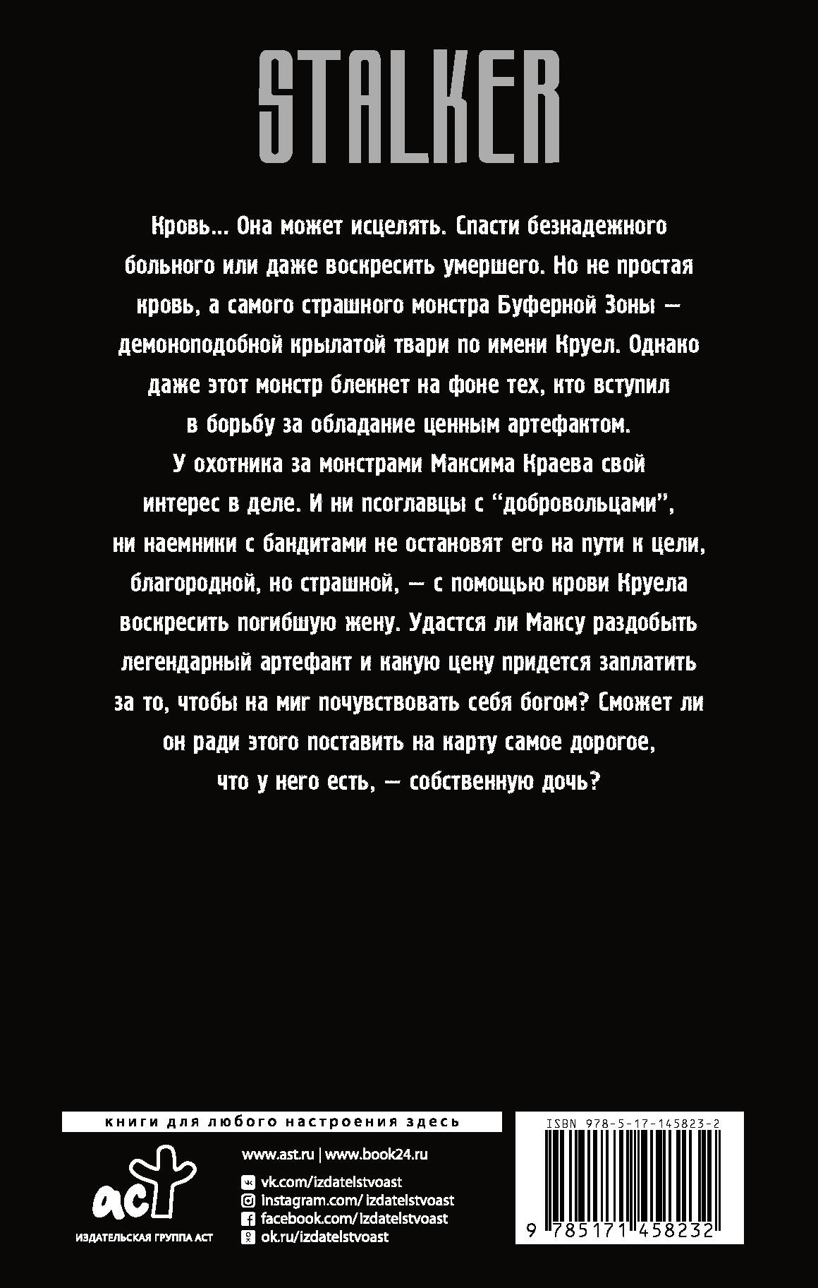 Кровь… Она может исцелять. Спасти безнадежного больного или даже воскресить умершего. Но не простая кровь, а самого страшного монстра Буферной Зоны - демоноподобной крылатой твари по имени Круел. Однако даже этот монстр блекнет на фоне тех, кто вступил в борьбу за обладание ценным артефактом. У охотника за монстрами Максима Краева свой интерес в деле. И ни псоглавцы с "добровольцами", ни наемники с бандитами не остановят его на пути к цели, благородной, но страшной, - с помощью крови Круела воскресить погибшую жену. Удастся ли Максу раздобыть легендарный артефакт и какую цену придется заплатить за то, чтобы на миг почувствовать себя богом? Сможет ли он ради этого поставить на карту самое дорогое, что у него есть, - собственную дочь?| Издательство | Издательство "АСТ" |