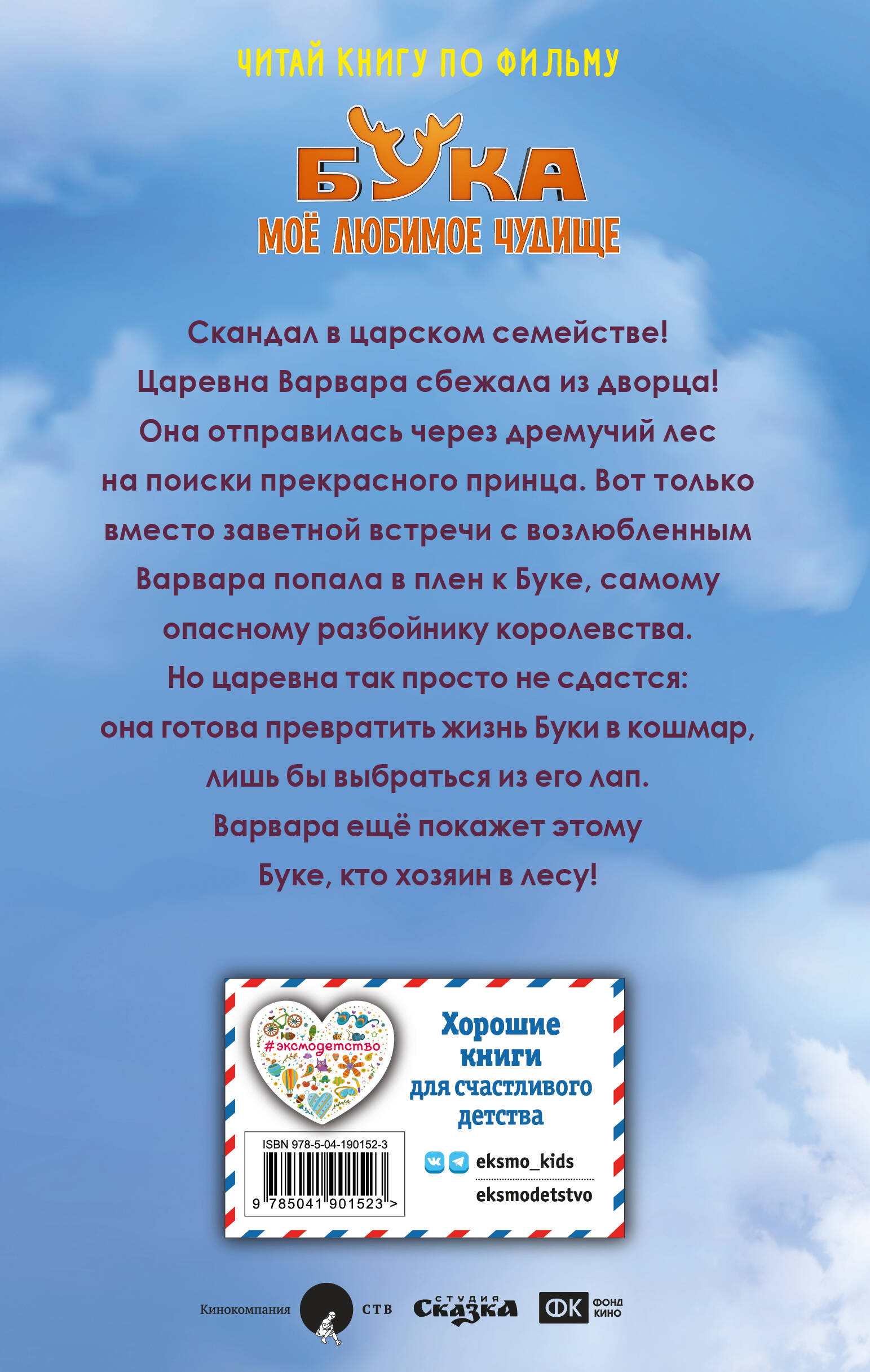 Официальная новеллизация по анимационному фильму «Бука. Моё любимое чудище». История о настоящей дружбе, которая поможет преодолеть любые трудности. Захватывающие приключения, много юмора и забавные герои - невозможно оторваться до последней страницы! Внутри - вклейки с цветными иллюстрациями. Единственная дочь царя Елисея, Варвара, сбежала из дворца! И отправилась на поиски прекрасного принца, который живёт в далёком королевстве. Вот только чтобы встретиться с возлюбленным, нужно пройти через дремучий тёмный лес. Там, по слухам, живёт самый опасный разбойник королевства - Бука. Получится ли у царевны не попасться в его лапы? И встретиться с прекрасным принцем?| Издательство | ООО "Издательство "Эксмо" |