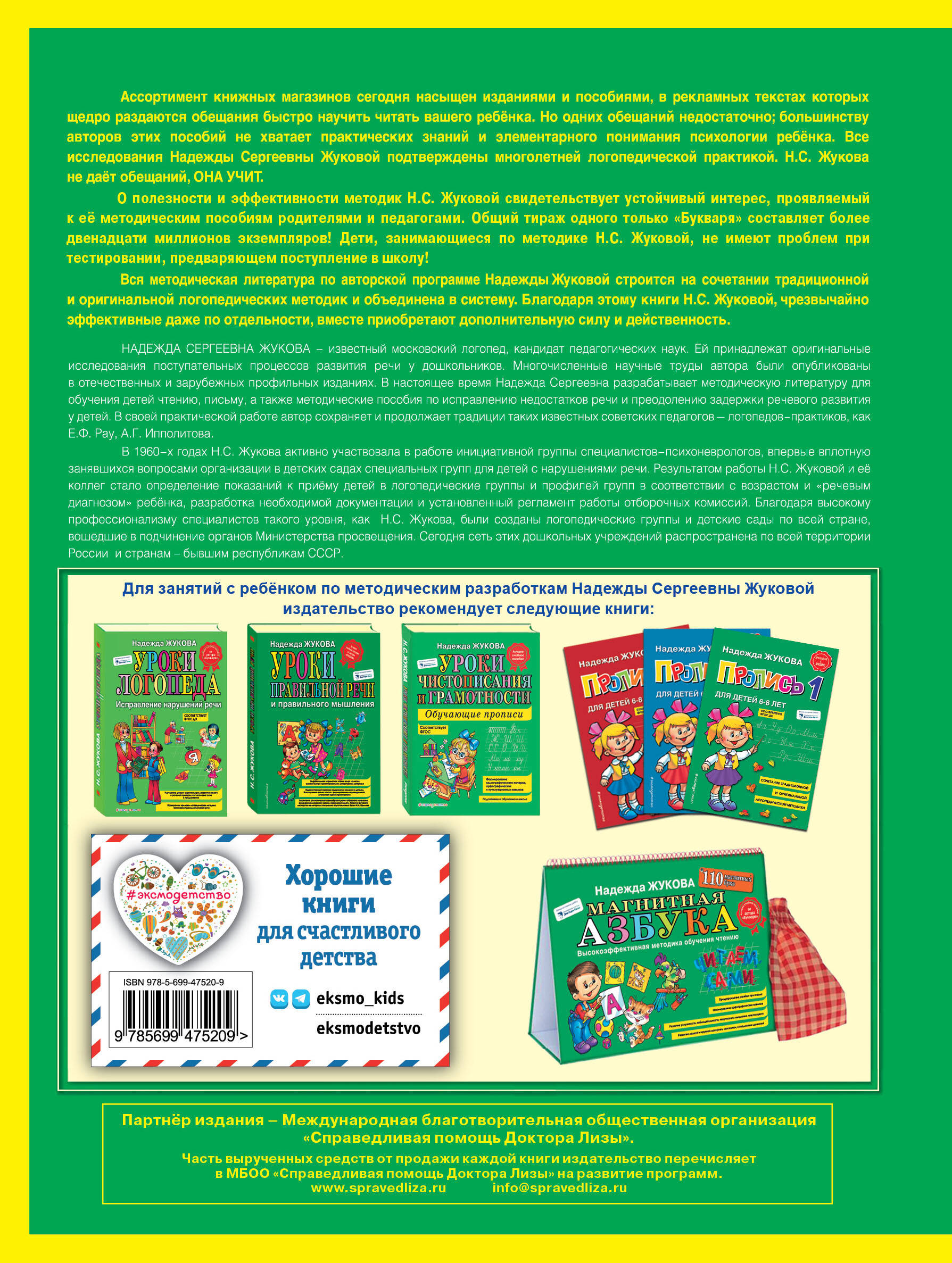 Для правильного чтения и письма, а также исправления ошибок в речи, для детей необходима только проверенная и прогрессивная, основанная на многолетнем опыте методика. Надежда Сергеевна Жукова - известный логопед, кандидат педагогических наук, приверженец классической педагогики. В своих книгах она использовала как исследования известных логопедов, так и самостоятельно разработанные оригинальные методики, проверенные временем. Имея большой практический опыт работы с особенными, «трудными» детьми, Надежда Сергеевна создала методику, доступную каждому, уйдя от «наукообразности» и «заумности». Все, кто когда-либо работал с ребенком по пособиям Надежды Жуковой, отмечают простоту подачи материала, легкость усвоения малышами и быструю обучаемость. «Букварь» - пример классического учебного пособия, по которому успешно выучились уже три поколения детей. Книга уменьшенного формата легче - и в портфеле много места не занимает, и в дороге обучаться помогает. Если вы захотите продолжить занятия с ребенком по авторской программе Н.С. Жуковой, издательство «ЭКСМО» рекомендует вам обратить внимание на следующие книги: - «Букварь», - «Первая после букваря книга для чтения», - «Уроки чистописания и грамотности», - «Я говорю правильно», - «Я пишу правильно», - «Уроки логопеда».| Издательство | Эксмо |