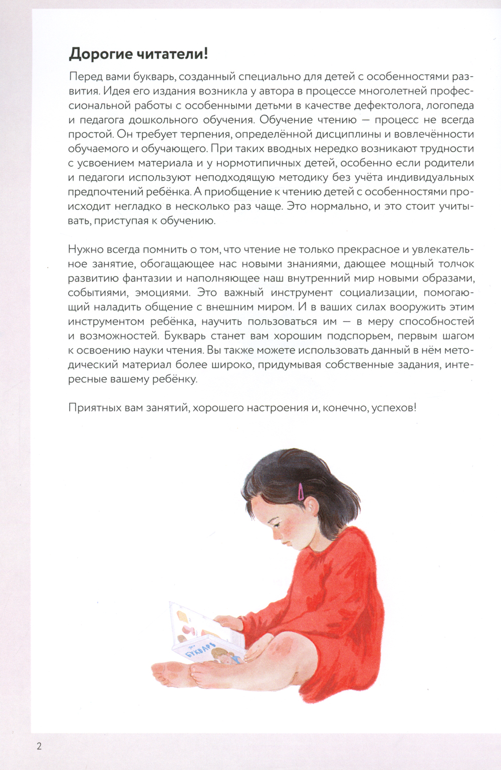 Этот букварь создан специально для детей с особенностями развития. Автор придумала его в процессе своей многолетней профессиональной работы с особенными детьми в качестве дефектолога, логопеда и педагога дошкольного обучения. Букварь адресован в первую очередь родителям детей со сложными речевыми нарушениями, интеллектуальными задержками, особенностями развития эмоционально-волевой сферы. Несложные задания, которые вы будете выполнять вместе с ребёнком, помогут ему постепенно, без ненужного напряжения и негатива, посильно освоить навык чтения. Занятия будут полезными и приятными для ребёнка и для обучающего взрослого. Наш букварь подойдёт и для обучения чтению нормотипичных детей, если вы хотите попробовать что-то новое или вам просто понравилась книга, которую вы держите в руках. Ведь дети - это прежде всего дети, и только уже потом они различаются наличием или отсутствием у них особенностей.| Издательство | Альпина Паблишер |