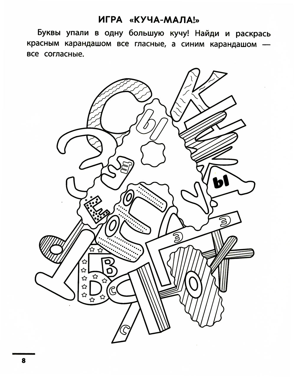 На каждой странице ребёнка ждут увлекательные игры, способствующие запоминанию букв, а также развитию зрительного и слухового восприятия, внимания и мышления.