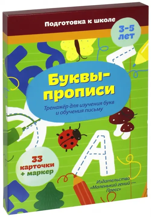 Это пособие призвано помочь ребенку быстро выучить буквы русского алфавита и научиться писать печатным шрифтом. Состоит из 33 двусторонних ламинированных карточек, на которых ребенок маркером может тренироваться в написании букв. Написанное легко вытереть, поэтому пособие можно многократно использовать. С карточками можно работать индивидуально или использовать их для работы в группе детского сада. Для детей дошкольного возраста.