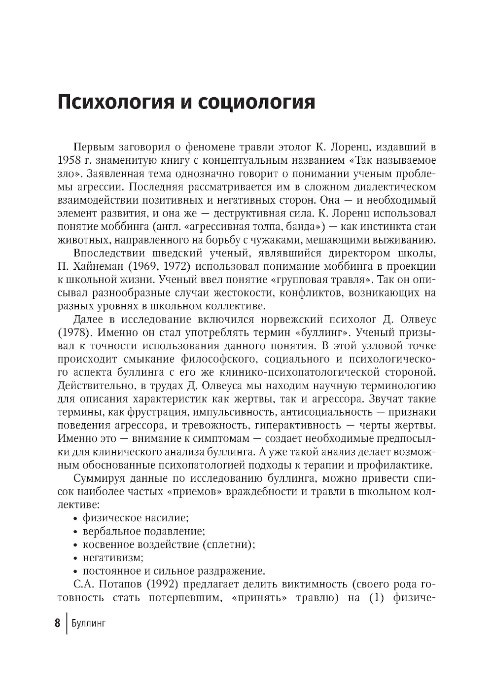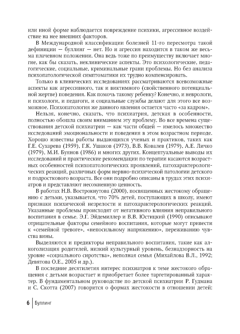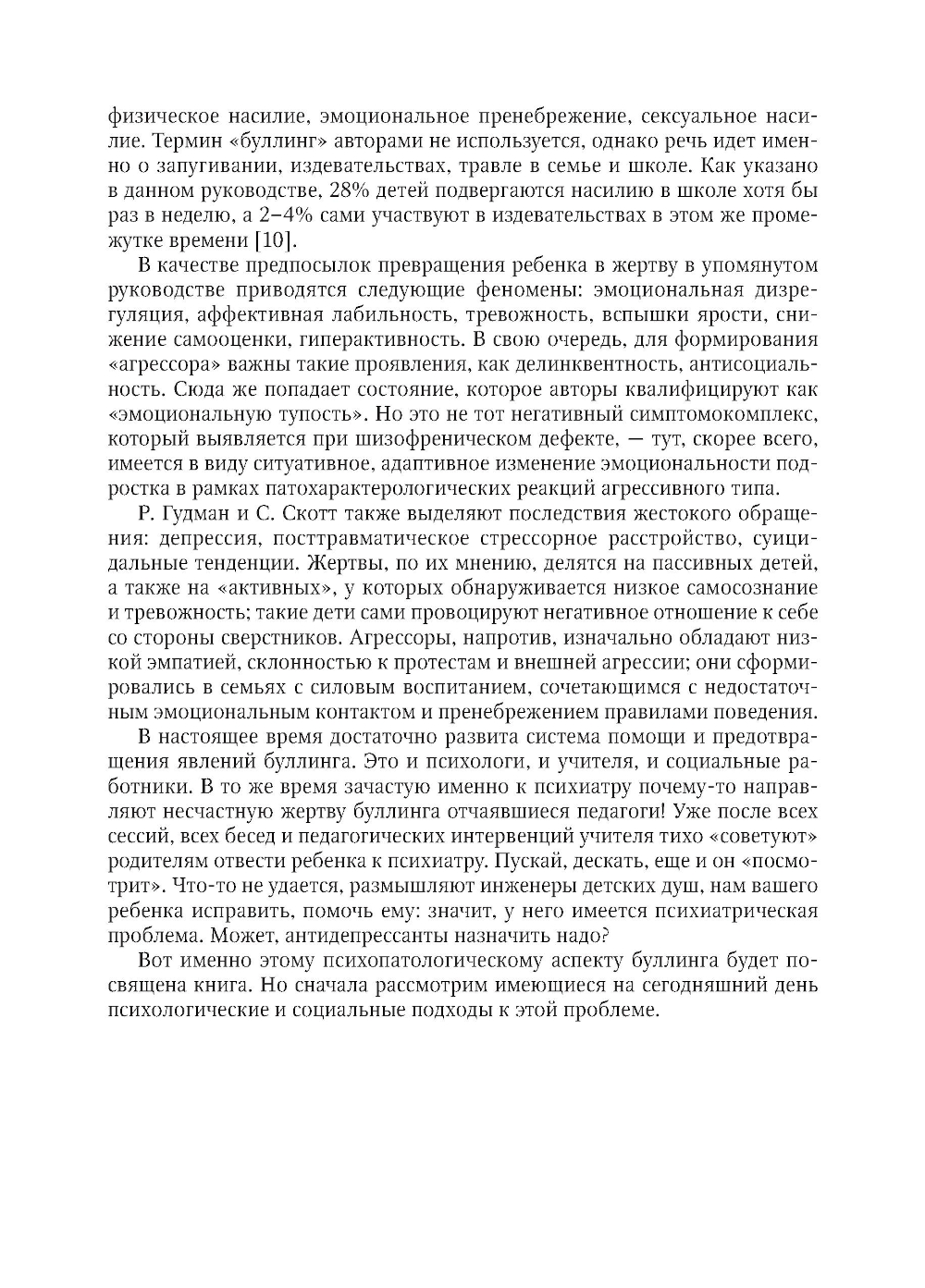 Под термином буллинг (англ. bullying - травля) понимается отрицательное воздействие оскорблений, запугивания, даже просто замечаний. Подобные переживания трансформируются в невротические и депрессивные симптомы, связанные с обостренным, болезненным восприятием указанных влияний. Этот алгоритм особенно отчетливо проявляется у детей, поскольку биологические и социальные факторы, действующие в этом возрасте, решающим образом определяют становление личности, поведение и возникновение аффектов. Издание предназначено для специалистов, занимающихся проблемами неврозов и депрессий, - психиатров, психологов, педагогов, социальных работников.| Издательство | ГЭОТАР-Медиа |