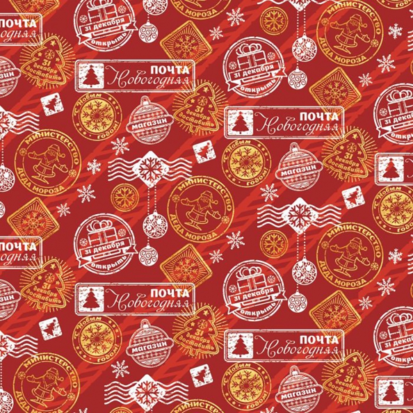 Бумага оберточная Новогодняя почта для сувенирной продукции в рулонах, с полноцветным декоративным рисунком, плотность 90 г/м2 / 100х70см.