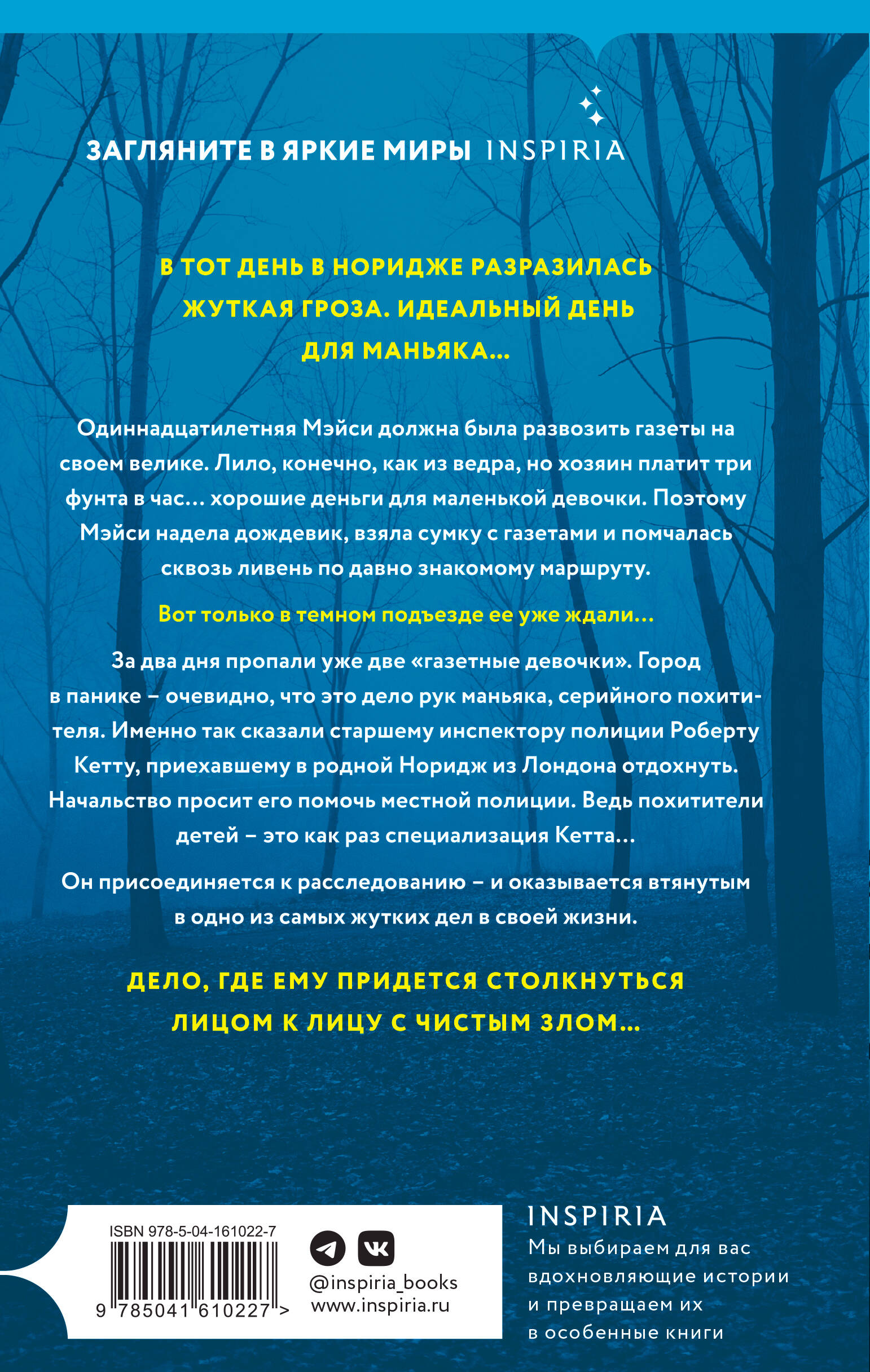 МЕЖДУНАРОДНЫЙ БЕСТСЕЛЛЕР. БЕСТСЕЛЛЕР AMAZON № 1. Они должны были разносить газеты с новостями. Но вместо этого сами оказались в заголовках новостей… В тот день в Норидже разразилась жуткая гроза. Идеальный день для маньяка… Одиннадцатилетняя Мэйси должна была развозить газеты на своем велике. Лило, конечно, как из ведра, но хозяин платит три фунта в час… хорошие деньги для маленькой девочки. Поэтому Мэйси надела дождевик, взяла сумку с газетами и помчалась сквозь ливень по давно знакомому маршруту. Вот только в темном подъезде ее уже ждали… За два дня пропали уже две «газетные девочки». Город в панике - очевидно, что это дело рук маньяка, серийного похитителя. Именно так сказали старшему инспектору полиции Роберту Кетту, приехавшему в родной Норидж из Лондона отдохнуть. Начальство просит его помочь местной полиции. Ведь похитители детей - это как раз специализация Кетта… Он присоединяется к расследованию - и оказывается втянутым в одно из самых жутких дел в своей жизни. Дело, где ему придется столкнуться лицом к лицу с чистым злом…| Издательство | Эксмо |
