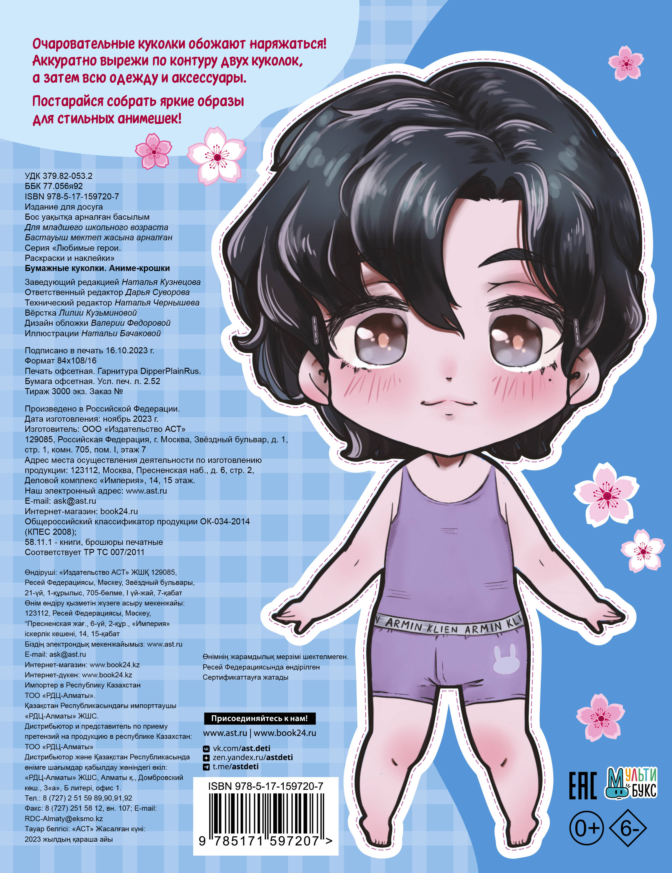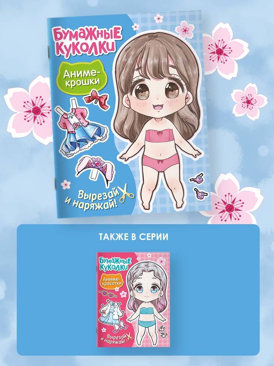 Очаровательные куколки обожают наряжаться! Аккуратно вырежи по контуру двух куколок, а затем всю одежду и аксессуары. Постарайся собрать яркие образы для стильных анимешек!