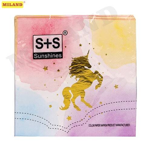 Бумажные салфетки с золотым тиснением Единороги ,33 см,20 шт, еврослот СП-5195