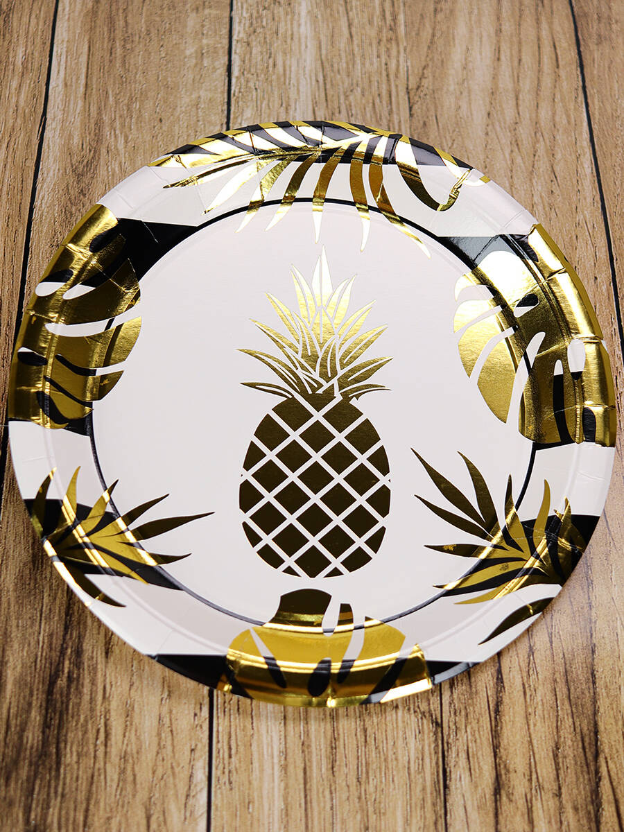 Бумажные тарелки с тиснением Ананасы, 23 см, 6 шт ФЛ-2770