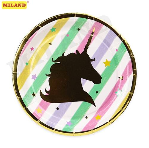 Бумажные тарелки с золотым тиснением Единорог,23 см,6 шт СП-5174
