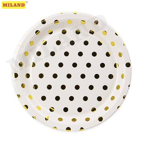Бумажные тарелки с золотым тиснением Горох,23 см,6 шт, еврослот СП-5171