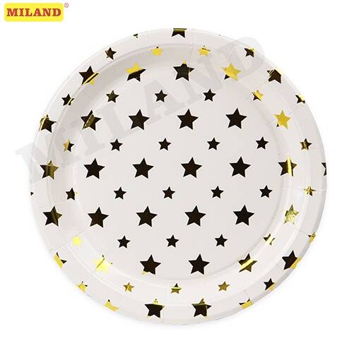 Бумажные тарелки с золотым тиснением Звёзды,23 см,6 шт, еврослот СП-5172