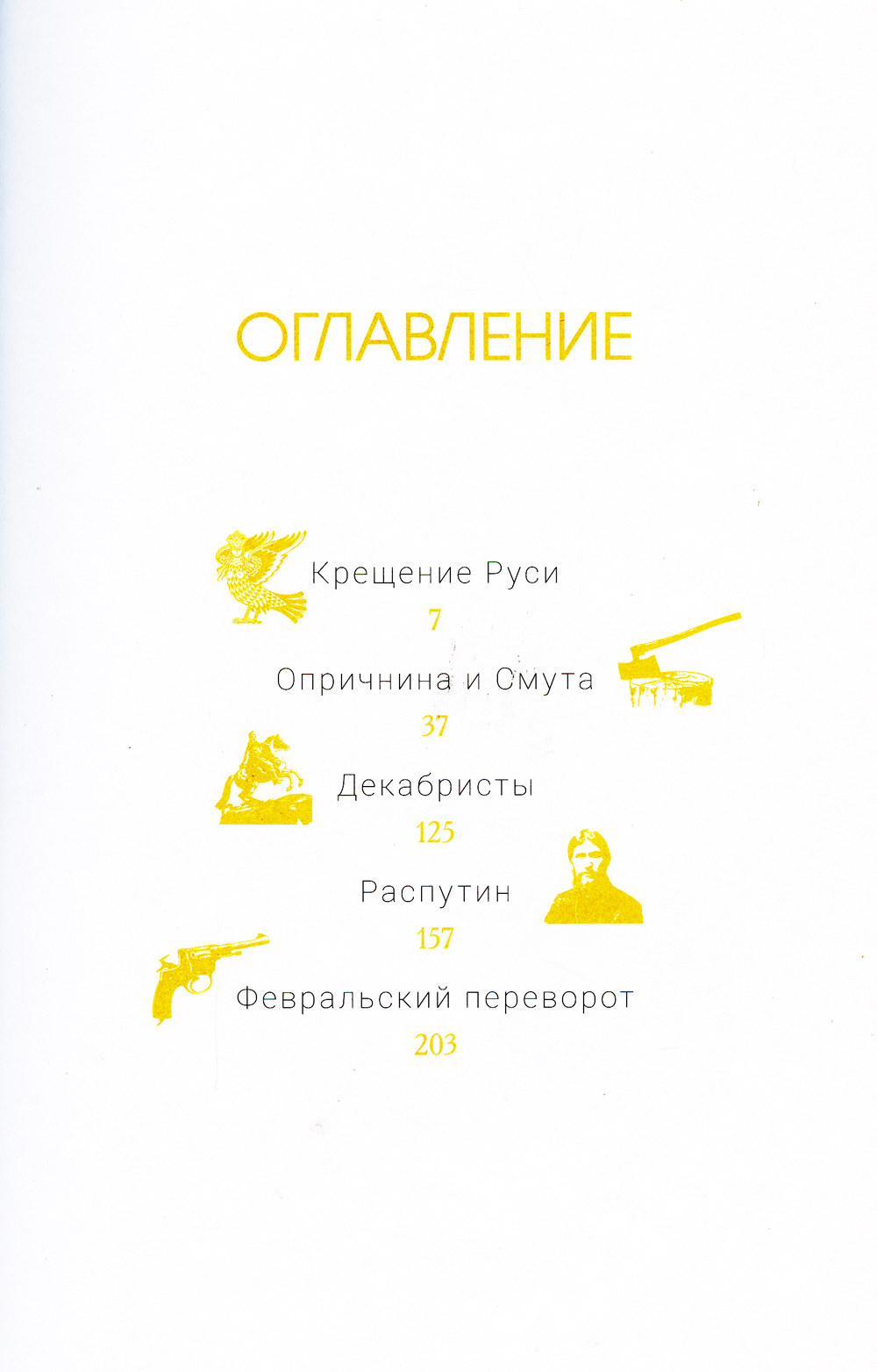 Сергей Минаев, главный редактор русского издания журнала Esquire, блестящий писатель, поставивший остроумный диагноз нашему времени в прославленном романе «ДухLess», и народный видеоблогер России, проводит в этой книге тщательную ревизию отечественной истории. Пять глав этой книги - пять видеопрограмм из цикла «Уроки Истории». Это пять размышлений о тяжелых и драматичных эпизодах нашего общего прошлого, грозивших расколом и уничтожением русской государственности и самой нашей национальной идентичности. Крещение Руси в православие, опричный режим Ивана Грозного и лютое Смутное время, восстание декабристов, последние годы правления Романовых, омраченные похождениями гениального злодея Григория Распутина, Февральский переворот 1917 года - вот какие сюжеты держит в фокусе внимания историк Сергей Минаев, призывая читателей совместно найти ответ на вечный вопрос: можем ли мы, русские люди, вершить перемены малой кровью?..| Издательство | Рипол Классик |