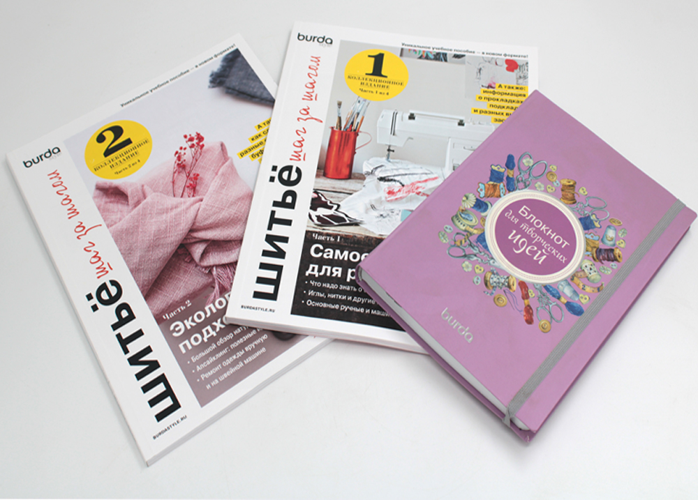 Burda. Шитье шаг за шагом: Ч. 1, 2 + Блокнот для творческих идей (комплект из 3-х книг)