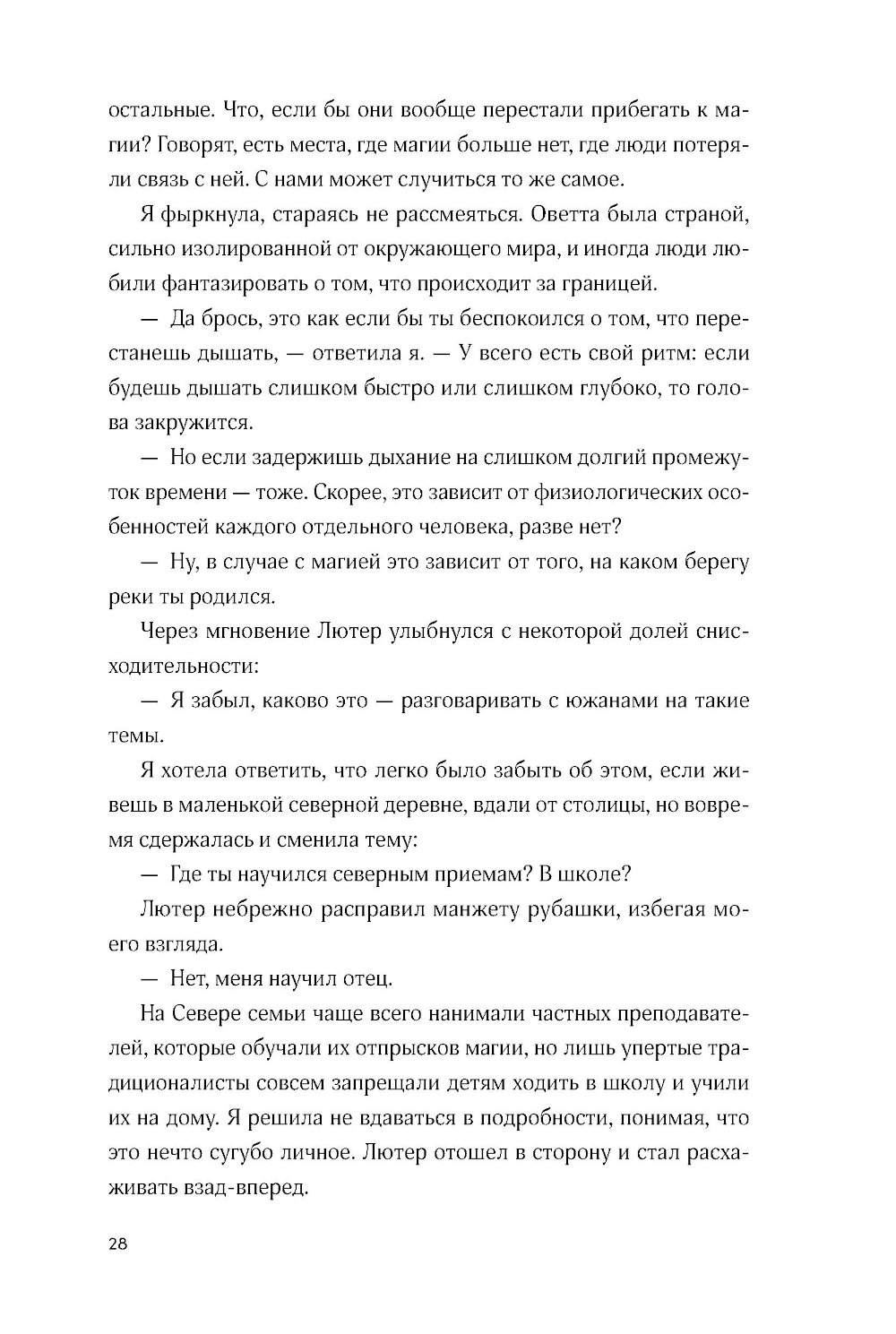 Страна Оветта разделена на две непримиримые части. Юг почитает магию как природный дар и призывает обращаться с ней бережно. Север, напротив, настаивает на неограниченной свободе магических практик, включая самые опасные. Дочь северянки и южанина Айлин Данн везде чувствует себя чужой, но не примыкает ни к одной из сторон. Стремясь завершить диссертацию, девушка обращается за помощью к Лютеру Муру - скандально известному северянину, изгнанному со двора. Его пристрастие к темной магии отталкивает Айлин, но чем ближе она знакомится с Муром, тем сильнее размывается грань между допустимым и запретным. Когда занятия с Лютером приносят первые результаты, девушка узнает тайну, грозящую разжечь войну. Перед Айлин встает нелегкий выбор: кому доверять и как сохранить хрупкий мир?| Издательство | Marshmallow Books |