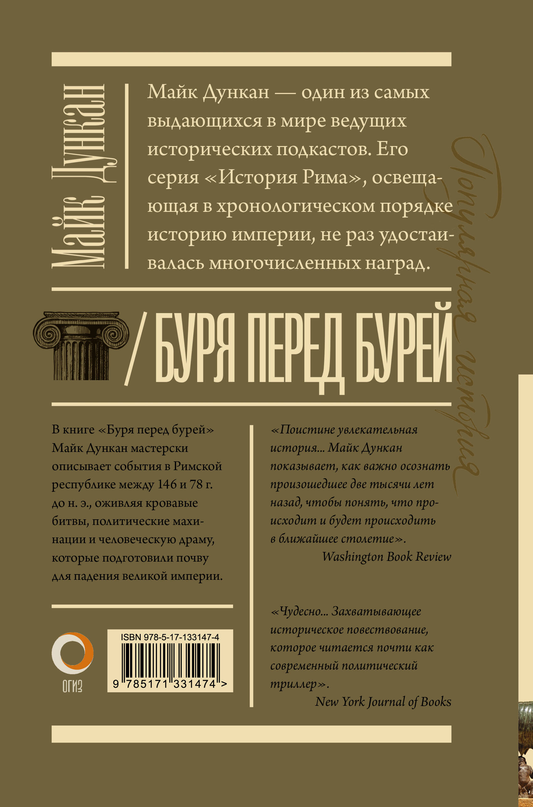 В книге "Буря перед бурей" Майк Дункан мастерски описывает события в Римской республике между 146-78 гг. до н. э., оживляя кровавые битвы, политические махинации и человеческую драму, которые подготовили почву для падения великой империи. Римская республика была одним из самых выдающихся достижений в истории цивилизации. Начав с небольшого города-государства в центральной Италии, Рим постепенно занял большие территориальные владения в Европе и Средиземноморье, наполненные мелкими тиранами, варварскими вождями и деспотическими царями. На протяжении веков римская модель правления оставалась удивительно прочной и не имеющей себе равных в истории Древнего мира.| Издательство | Издательство "АСТ" |