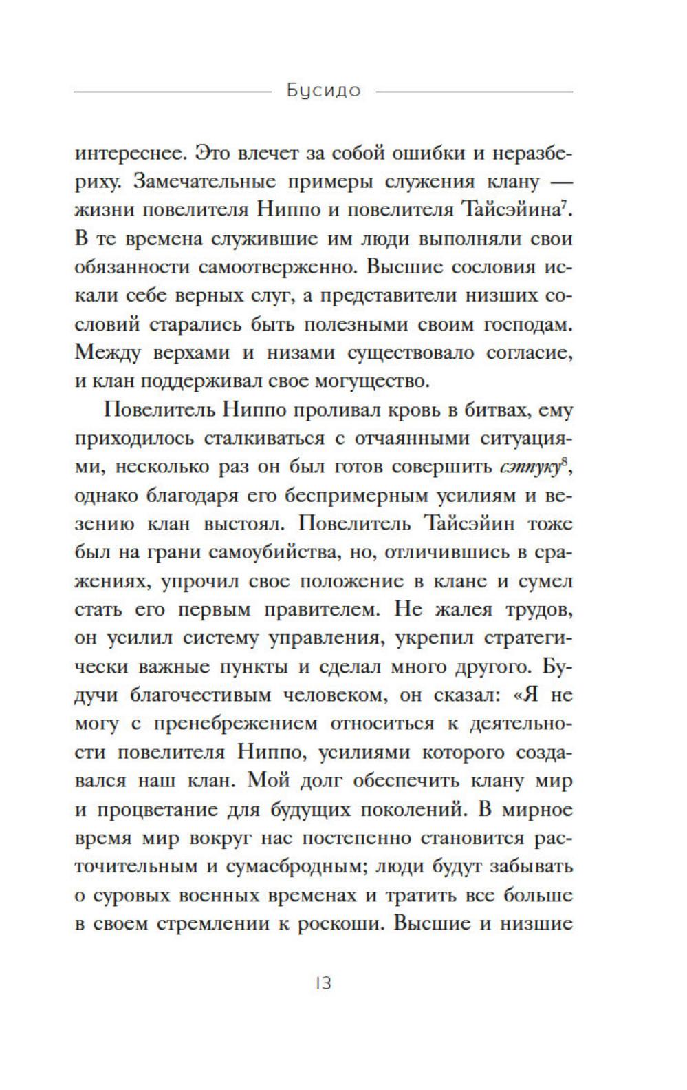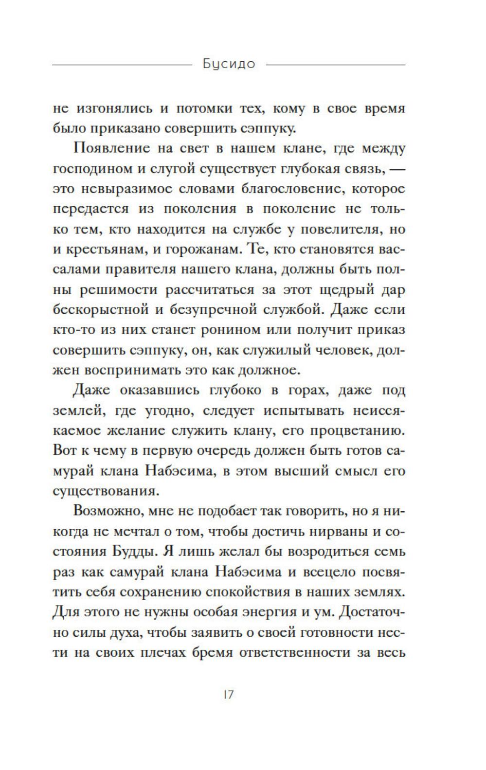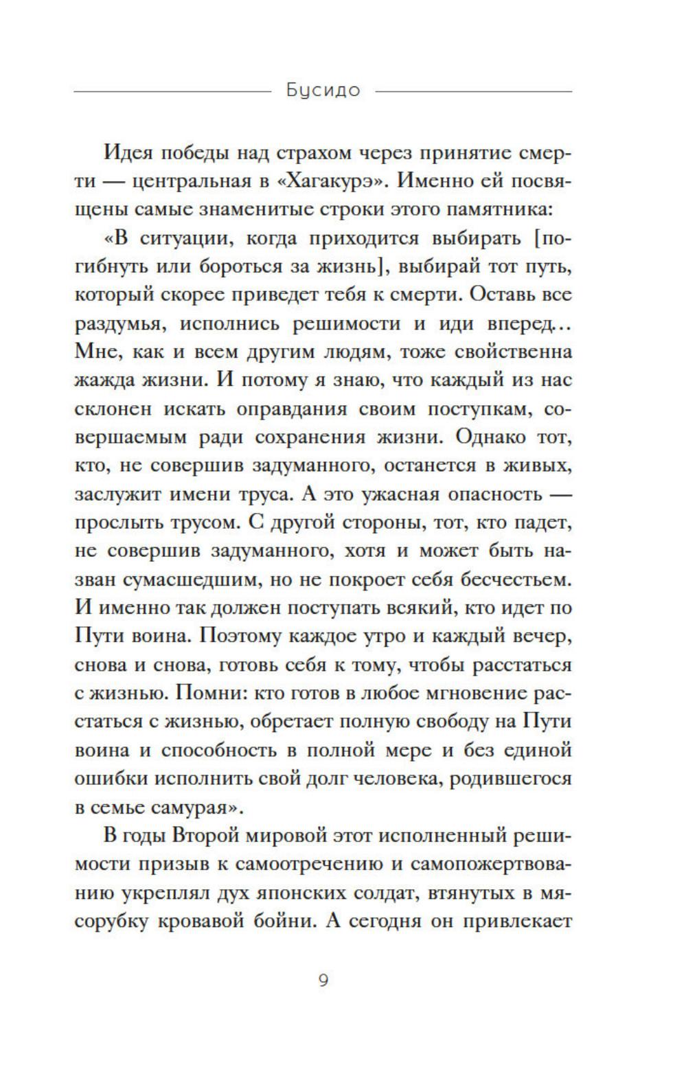 Перед вами легендарный свод правил самурая, собранный знаменитым воином XVII века Цунэтомо Ямамото. Уже вошедший в золотой запас человечества, «Бусидо» предлагает уникальный путь к пониманию жизни через призму древних традиций, учит ценить долг, преданность и бесстрашие, а также помогает осознать важность внутренней гармонии и духовного роста. В военное время, когда жизнь была полна вызовов и конфликтов, «Бусидо» стал маяком мудрости и силы. Юкио Мисима, автор мировых бестселлеров и один из самых читаемых в мире писателей, писал следующее: «Возможно, «Бусидо» - изначально книга-парадокс. Во время войны она излучала свет, но средь белого дня была не очень заметна, и лишь во мраке книга засияла по-настоящему».| Издательство | КоЛибри |