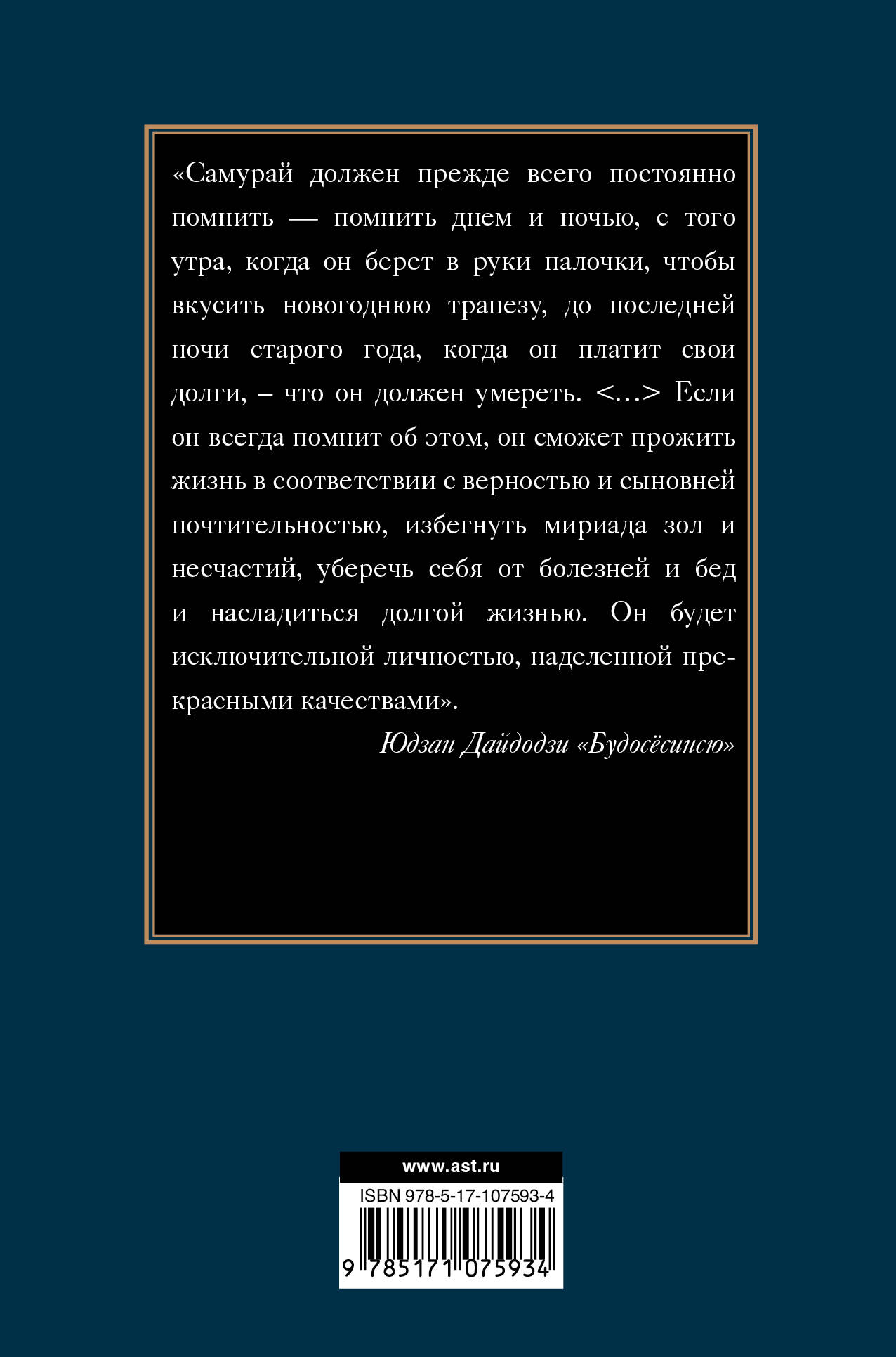 Первые самураи появились в Японии еще в VII в. Шло время, cформировались устои морального кодекса самурая, позже превратившегося в свод заповедей "Путь воина" ("Бусидо"). Века сменялись тысячелетиями, но и по сей день моральный кодекс самураев не утратил своей актуальности. В этой книге собраны наиболее авторитетные трактаты и руководства, посвященные бусидо. "Будосёсинсю" Юдзана Дайдодзи, "Хагакурэ" Ямамото Цунэтомо и "Книга пяти колец" Миямото Мусаси непременно станут духовными спутниками каждого, кто ищет ответы на главные вопросы в своей жизни.| Издательство | ИЗДАТЕЛЬСТВО "АСТ" |