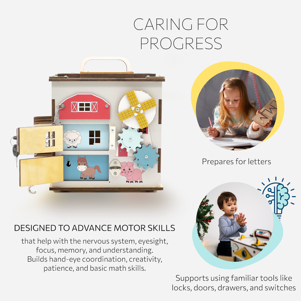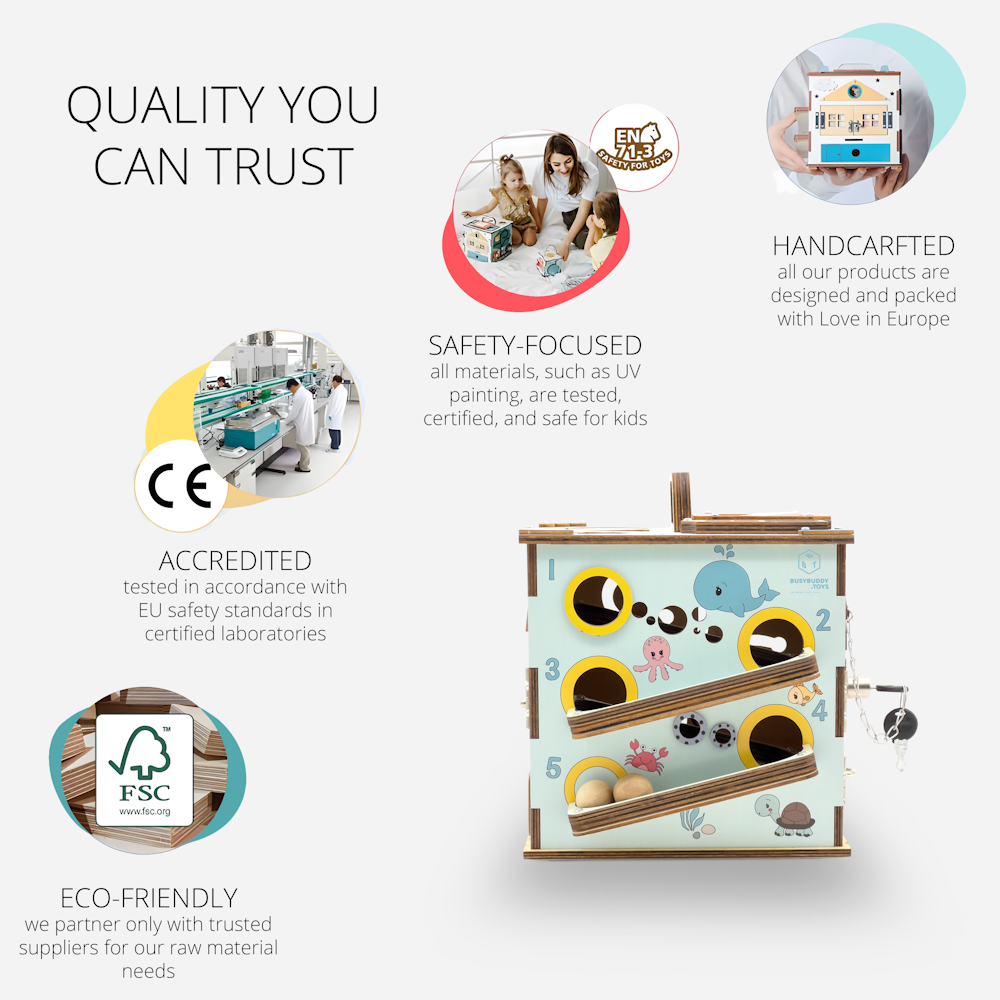 * ОБРАЗОВАТЕЛЬНАЯ ИГРУШКА - Предлагая образовательное обогащение и увлекательный игровой опыт, деревянный кубик для активного отдыха BusyBuddyToys дает детям возможность исследовать, учиться и расти в нескольких областях развития и вдохновляет любопытство, творчество и уверенность.