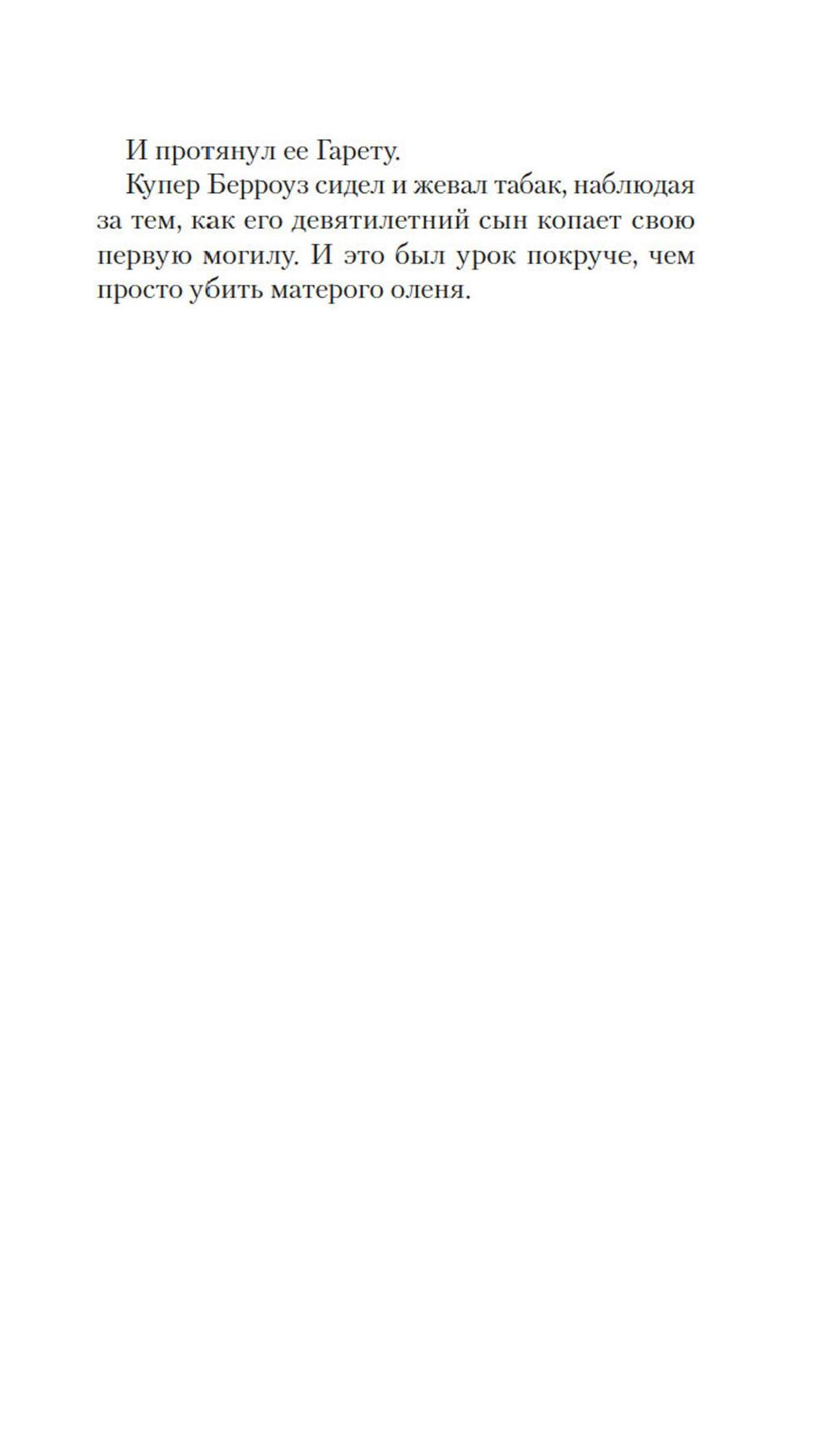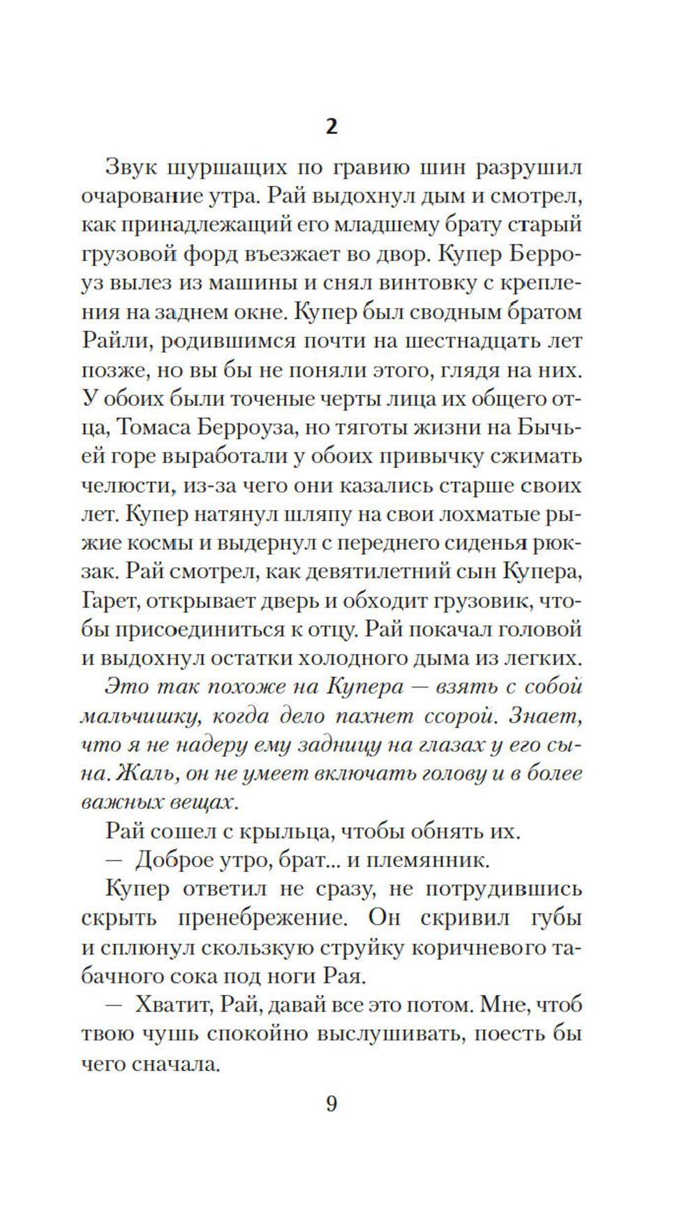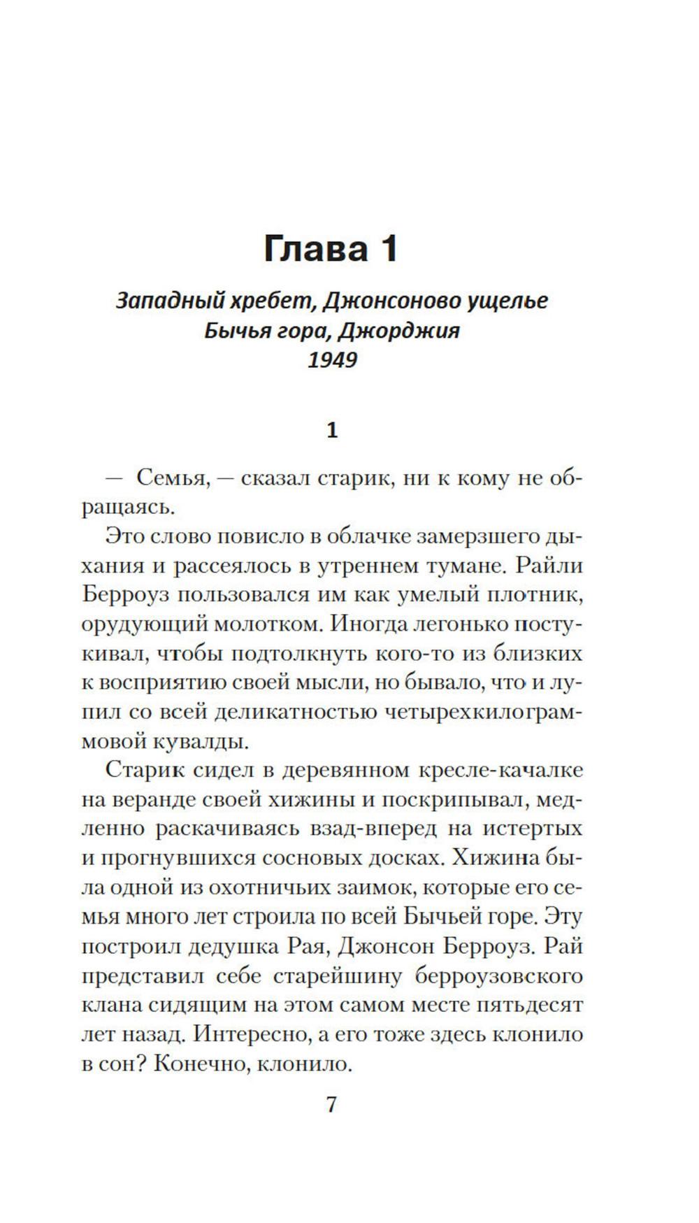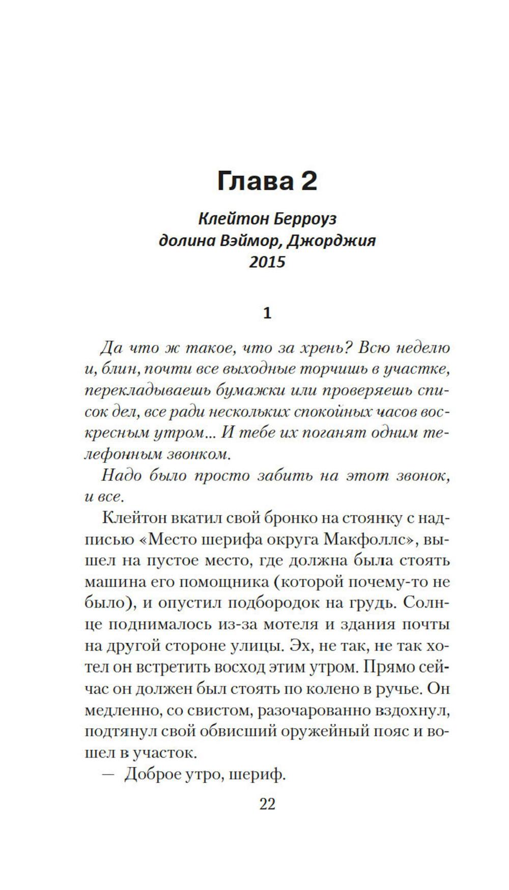 СОДЕРЖИТ ИНФОРМАЦИЮ О НАРКОТИЧЕСКИХ ИЛИ ПСИХОТРОПНЫХ ВЕЩЕСТВАХ, УПОТРЕБЛЕНИЕ КОТОРЫХ ОПАСНО ДЛЯ ЗДОРОВЬЯ. ИХ НЕЗАКОННЫЙ ОБОРОТ ВЛЕЧЕТ УГОЛОВНУЮ ОТВЕТСТВЕННОСТЬ. Бычья гора в глухом углу штата Северная Джорджия - вотчина жестокого клана Берроузов, члены которого занимаются незаконными промыслами. Начав с производства самогона во времена сухого закона, семья постоянно расширяет бизнес и становится ведущим игроком на нелегальном рынке юга США. Но Клейтон Берроуз, младший из трех братьев - наследников криминальной империи, становится местным шерифом, тем самым противопоставив себя семье. Вооруженный нейтралитет с братьями, который удается сохранять шерифу, нарушают интриги агента ФБР, прибывшего в Джорджию явно не только в рамках служебного долга. Динамичный, атмосферный, захватывающий роман о трех поколениях семьи Берроуз повествует о соперничестве, преданности семье, предательстве и мести.| Издательство | Иностранка |
