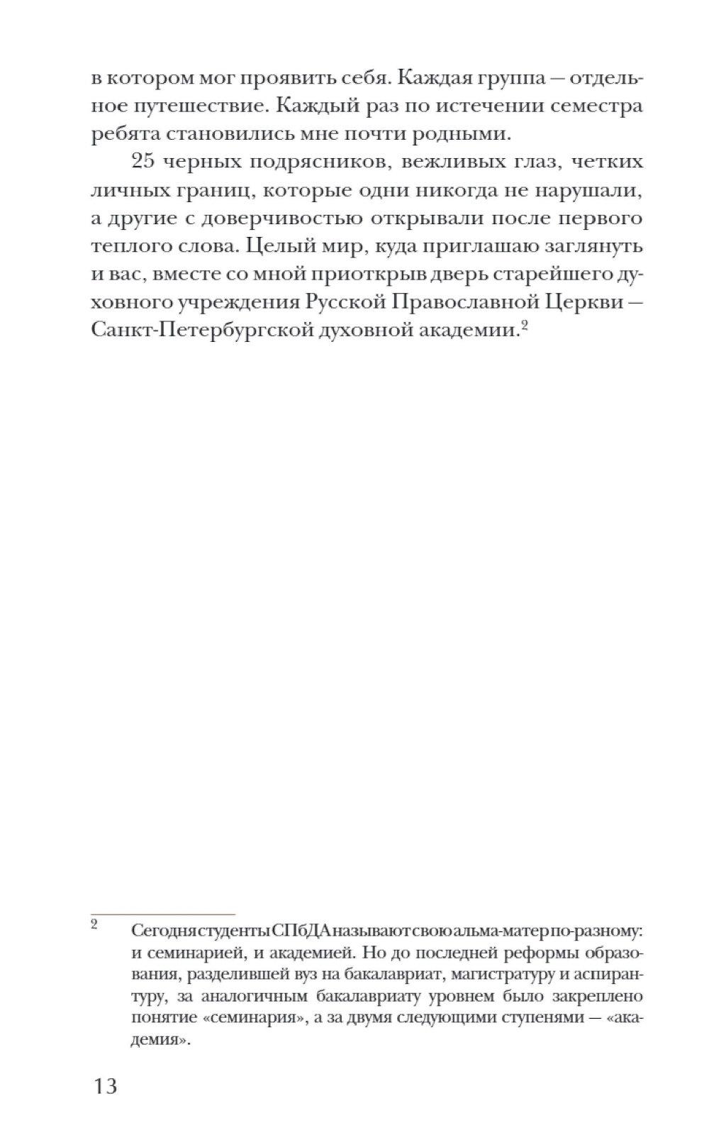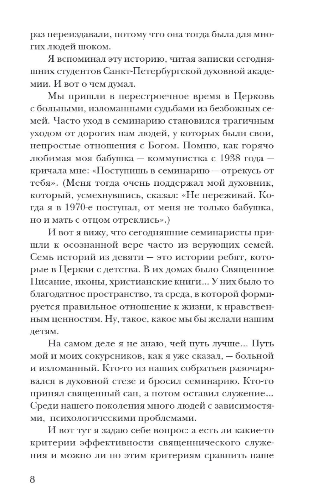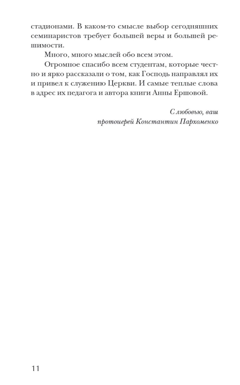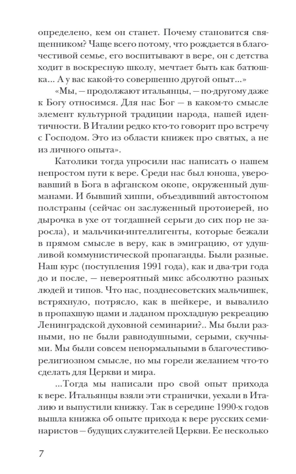 «Был футболистом, стал семинаристом. Непридуманные истории будущих священников» - одна из редких книг, посвященных «закулисью» жизни в духовной семинарии. Девять героев рассказывают о поисках Бога, делятся историями сложного духовного выбора и последующего изменения судьбы. Возможно, у кого-то из них жизнь до принятия священства была ярче и благополучнее, но тем серьезнее и ответственнее воспринимается их решение. Ведь путь будущего священника всегда требует твердой веры, большой силы воли и терпения.| Издательство | Изд. НИКЕЯ |