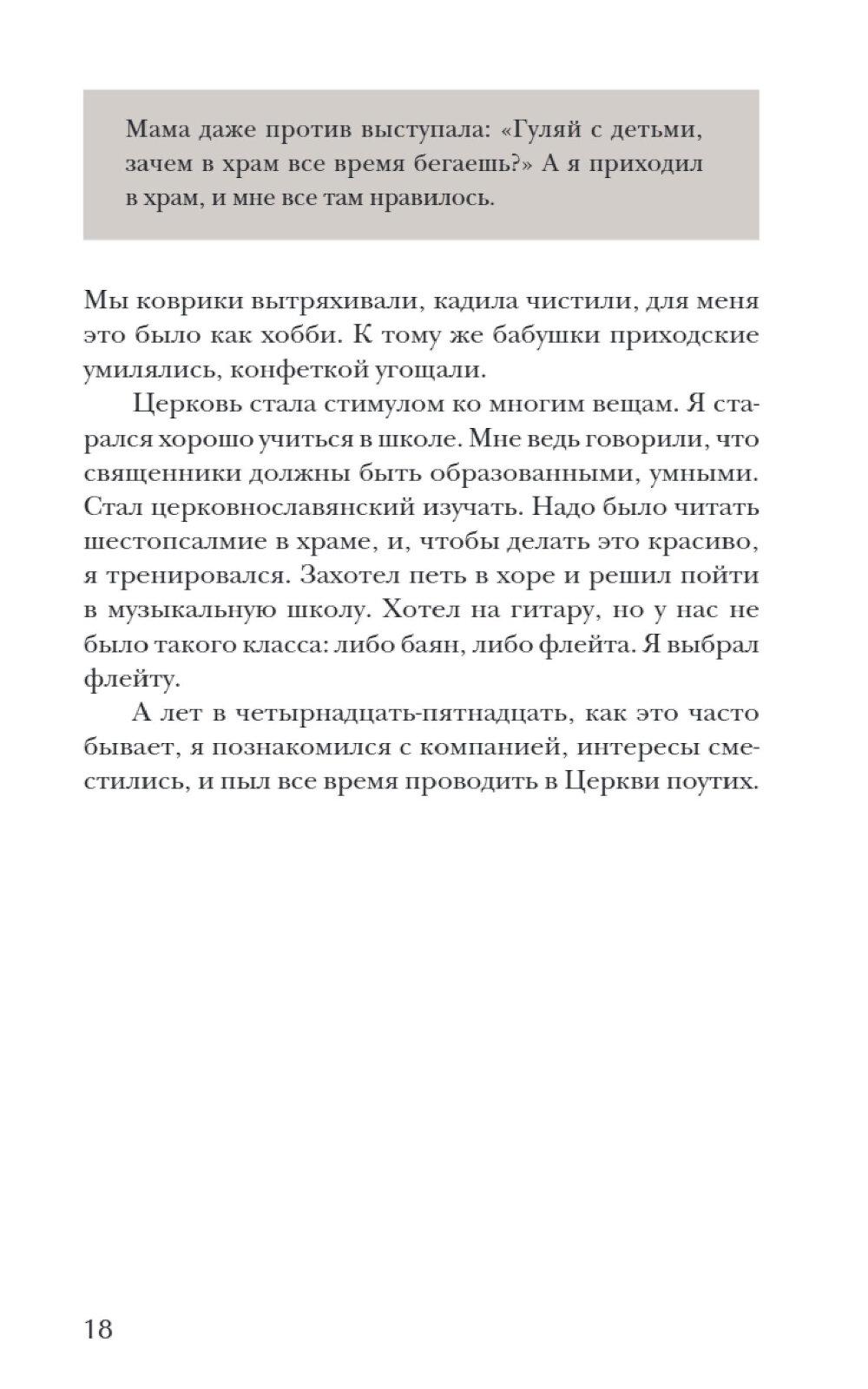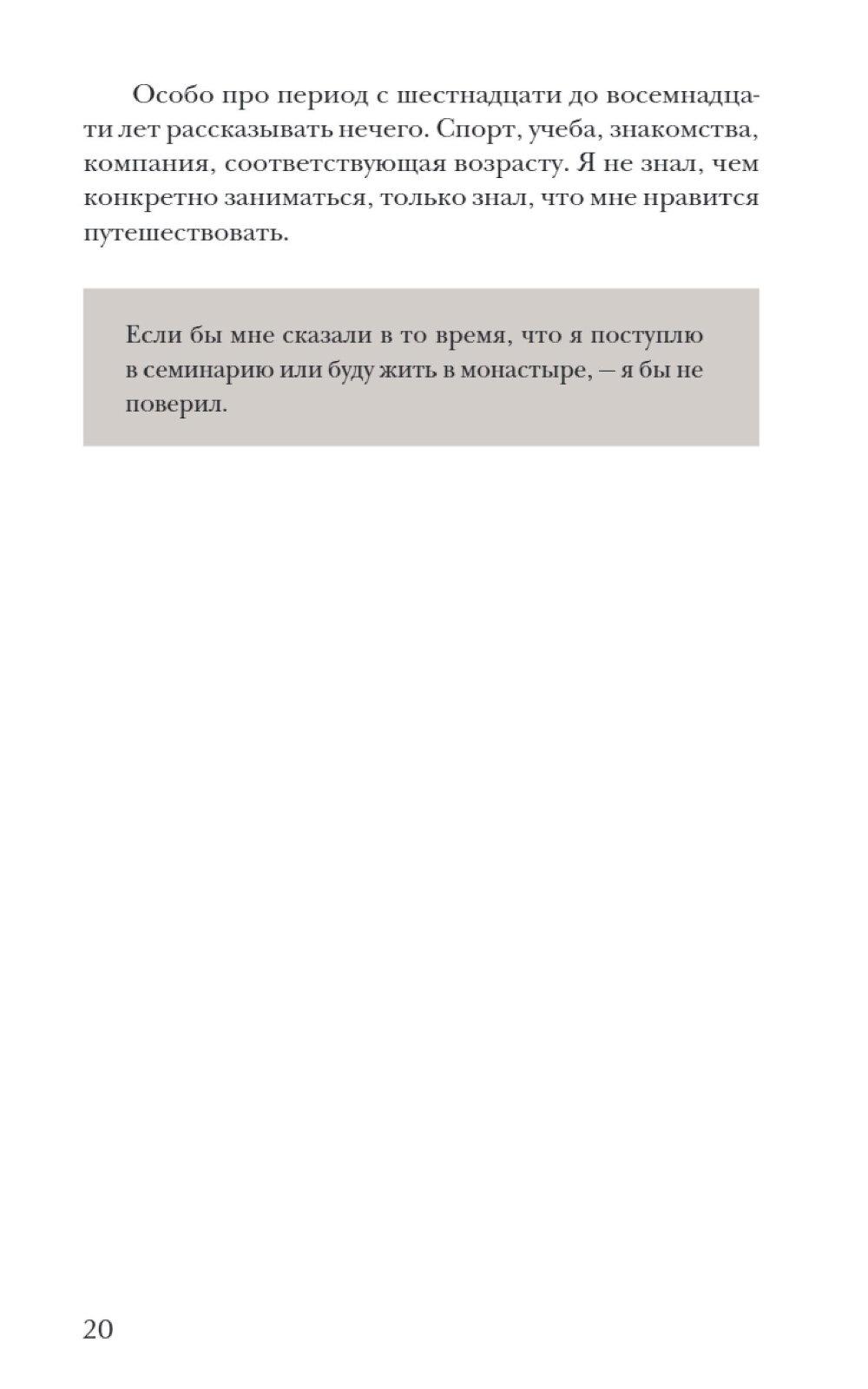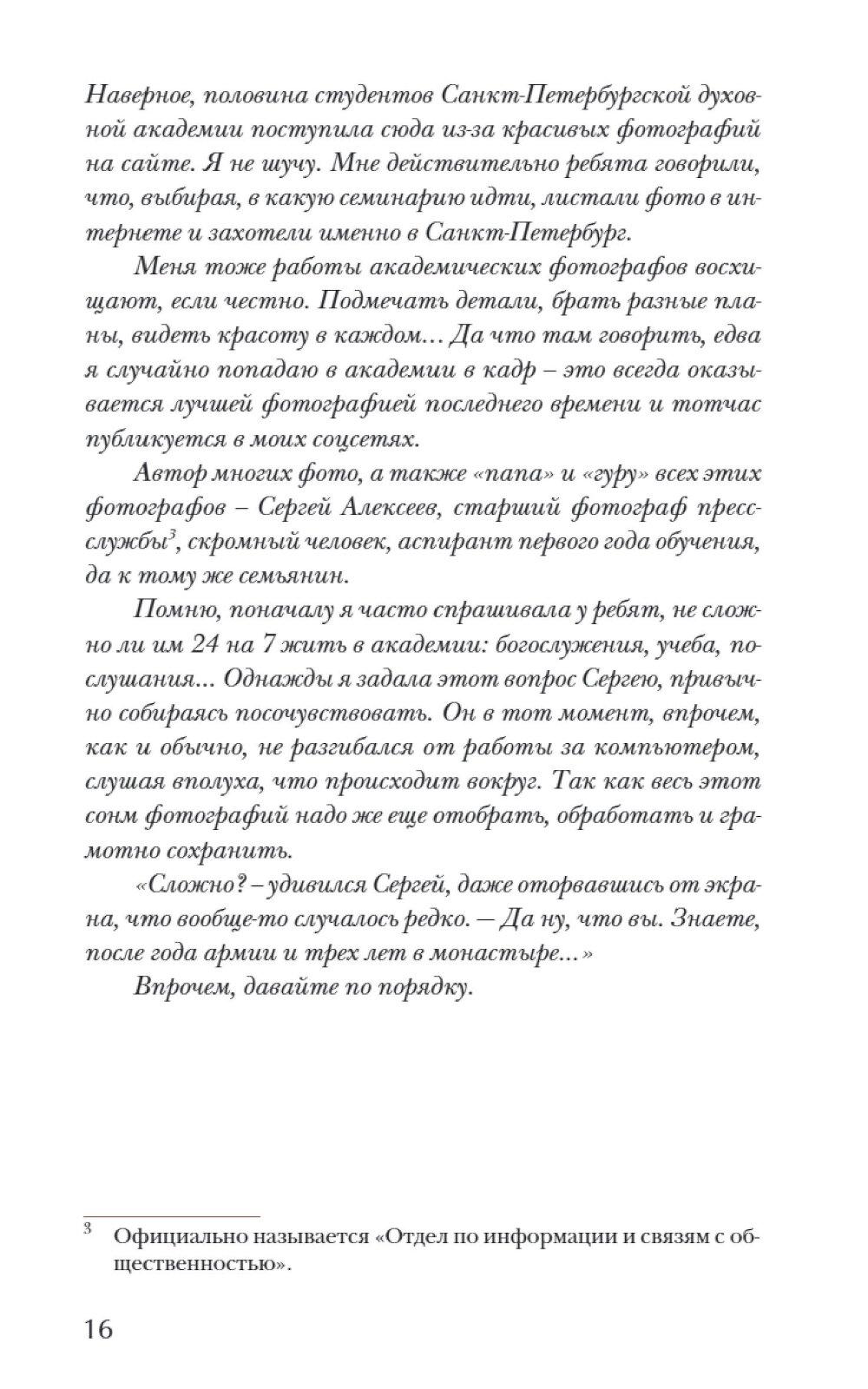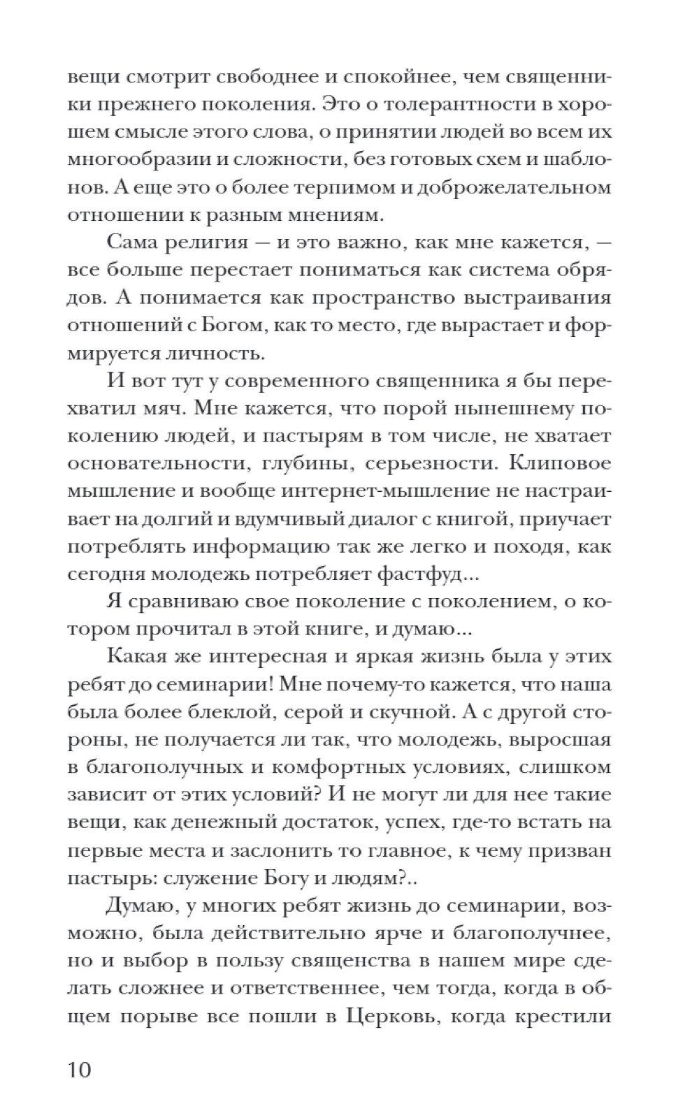 «Был футболистом, стал семинаристом. Непридуманные истории будущих священников» - одна из редких книг, посвященных «закулисью» жизни в духовной семинарии. Девять героев рассказывают о поисках Бога, делятся историями сложного духовного выбора и последующего изменения судьбы. Возможно, у кого-то из них жизнь до принятия священства была ярче и благополучнее, но тем серьезнее и ответственнее воспринимается их решение. Ведь путь будущего священника всегда требует твердой веры, большой силы воли и терпения.| Издательство | Изд. НИКЕЯ |