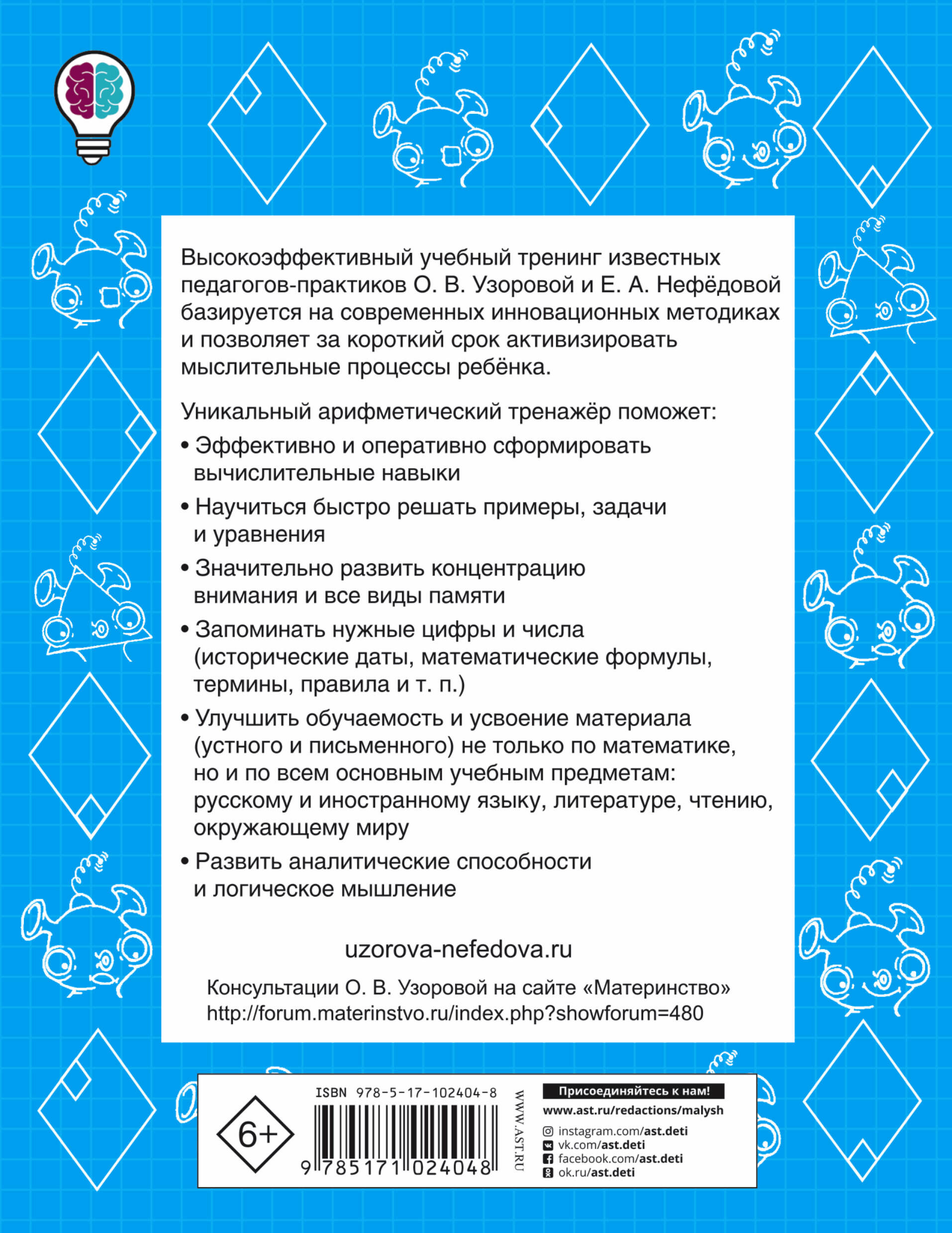 Новое пособие, основанное на уникальной методике известных педагогов-практиков О. В. Узоровой и Е. А. Нефёдовой, поможет ученику проверить и закрепить знания и умения по курсу математики 2 класса. Оригинальные и увлекательные задания на полях книги позволят развить мышление, внимание, память, математические способности ребёнка.| Издательство | ИЗДАТЕЛЬСТВО "АСТ" |
