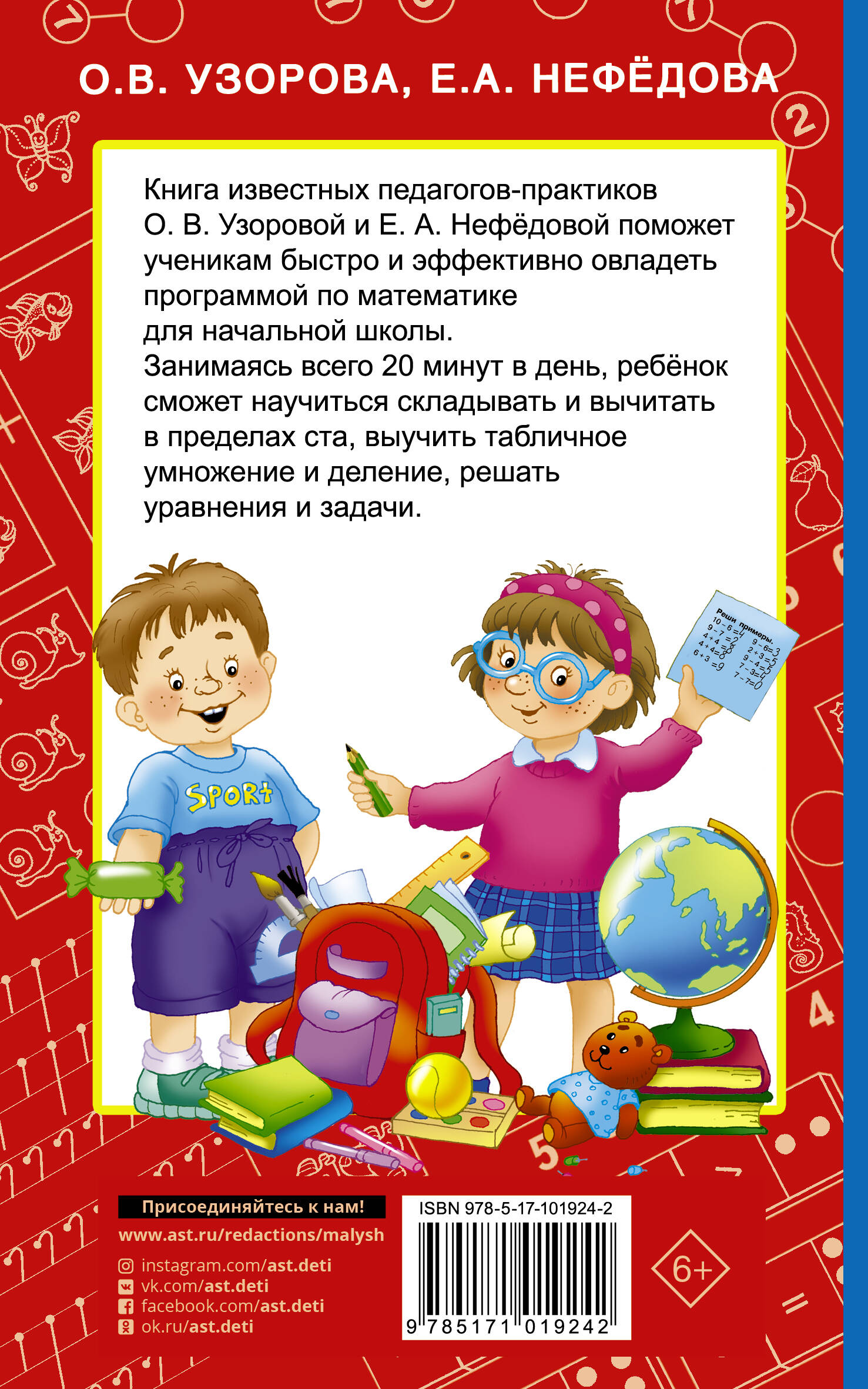Новое учебное пособие известных педагогов-практиков О. В. Узоровой и Е. А. Нефёдовой поможет ученику овладеть всеми основными темами по математике для начальной школы. Занимаясь по книге ребёнок сможет научиться считать в пределах ста, выучить табличное умножение и деление, научиться решать задачи и уравнения.| Издательство | ИЗДАТЕЛЬСТВО "АСТ" |