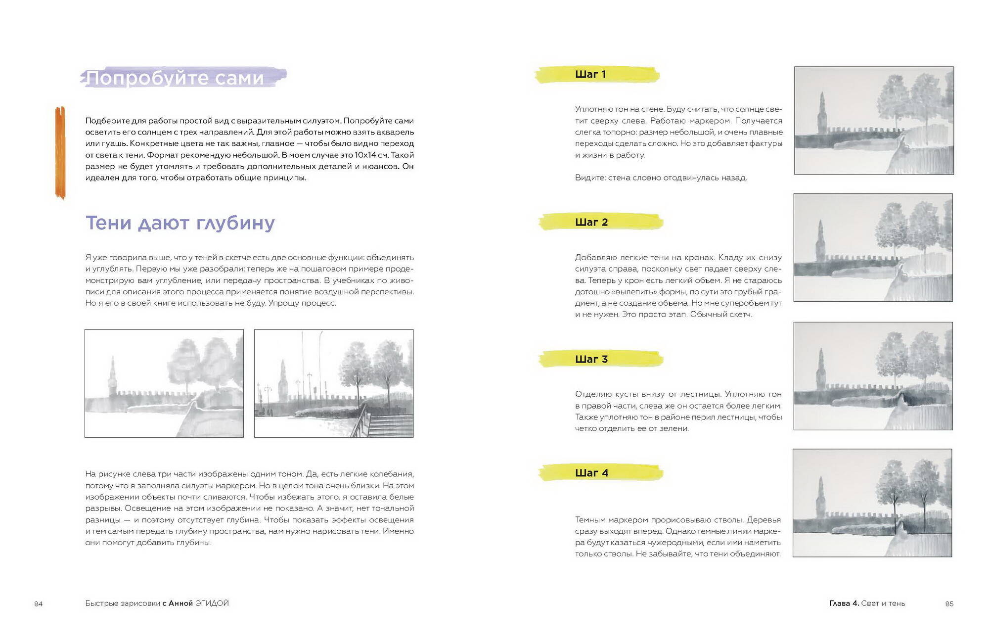 Вы научитесь замечать красоту и волшебство в окружающей действительности, выхватывать мгновения и переносить их на бумагу, делать пленэрные зарисовки. С первых страниц книги начнете практиковаться не на абстрактных фигурах, а на том, что вас вдохновляет.