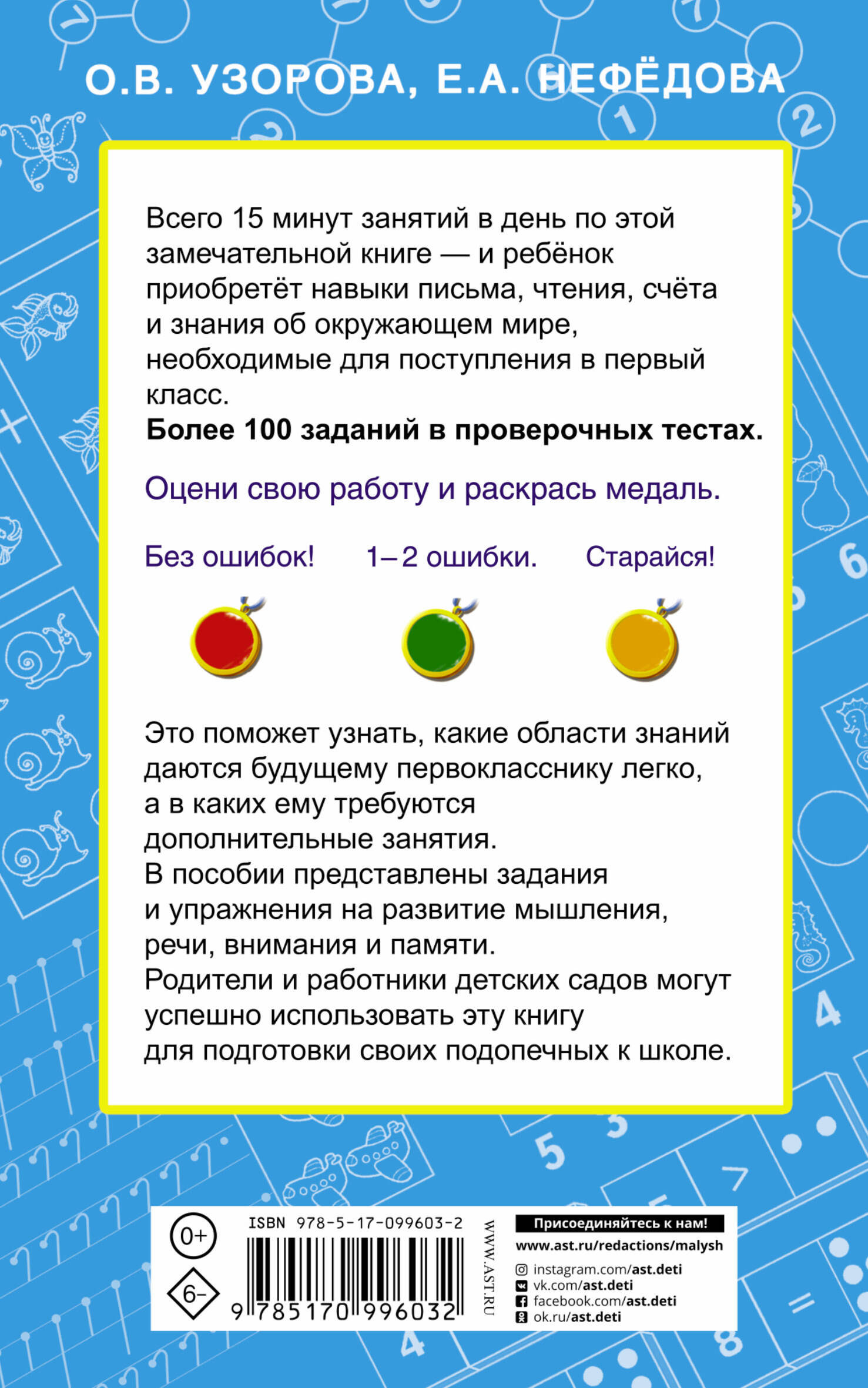 Пособие известных авторов-педагогов О. В. Узоровой и Е. А. Нефедовой включает упражнения и тестовые задания для подготовки к школе. Пособие адресовано учителям, родителям, а также будущим первоклассникам. - Благодаря многообразию интересных упражнений и тестов дошкольник будет заниматься по книге с интересом и удовольствием. - Все важнейшие темы для подготовки к школе - под одной обложкой. - Выполняя задания, ребенок станет усидчивее, внимательнее и аккуратнее - это очень важно для школьной учебы. - Регулярные занятия на развитие речи, памяти, внимания, мышления и мелкой моторики помогут будущим первоклассникам раскрыть свой интеллектуальный потенциал.| Издательство | Издательство "АСТ" |