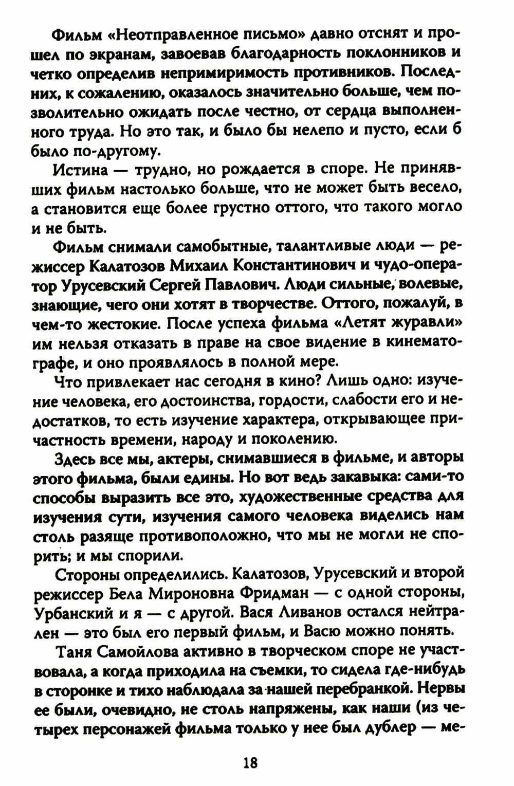 Иннокентий Смоктуновский (1925 - 1994) по праву считается одним из лучших актеров не только в советском и российском, но и в мировом искусстве. У него была сложная судьба: в Великую Отечественную войну он сражался на фронте и попал в плен, месяц провел в лагерях для военнопленных, бежал, вступил в партизанский отряд, затем вернулся в действующую армию, участвовал в боях в Польше и Германии. После войны Смоктуновский считался «неблагонадежным», поскольку побывал в плену, - с большим трудом ему удалось поступить в театр в Норильске, и лишь на четвертом десятке лет началась его настоящая актерская карьера. Однако его роли тоже воспринимались неоднозначно: каких только суждений он ни удостаивался! Ярлыки закрепляли сыгранные им «странные персонажи» - князь Мышкин, Гамлет, Иудушка Головлев, Деточкин, чеховский Иванов... В этой книге, написанной самим артистом, все оставлено так, как было задумано автором. В ней он предельно искренен, как и в своих ролях.| Издательство | Родина |