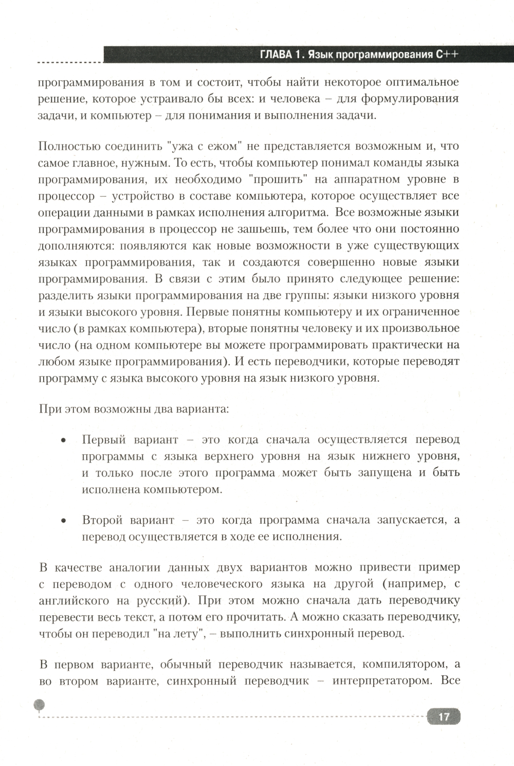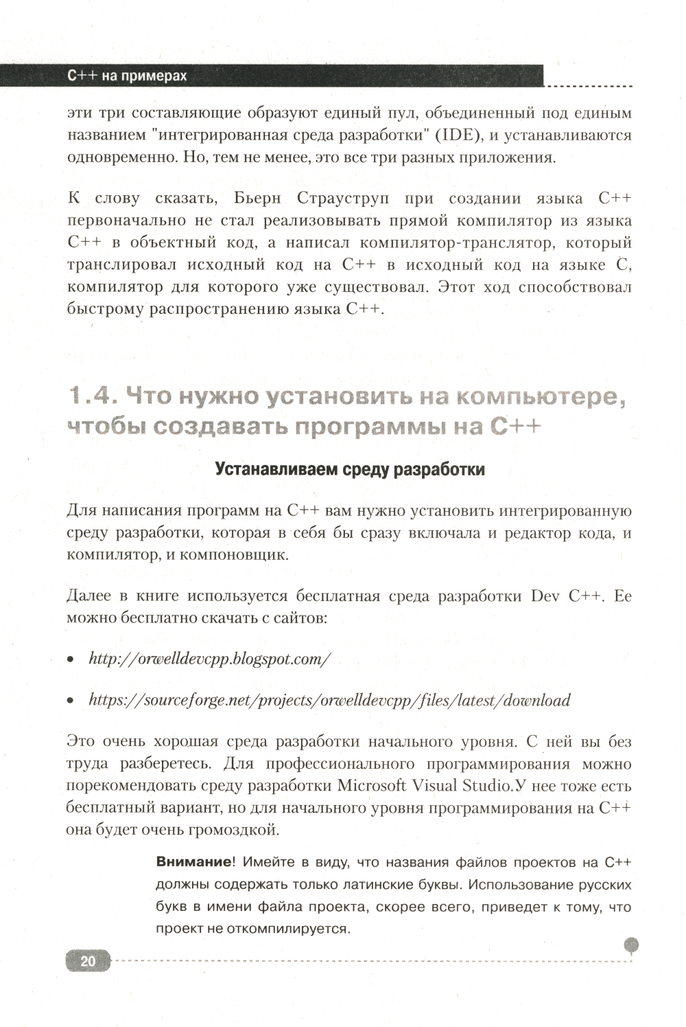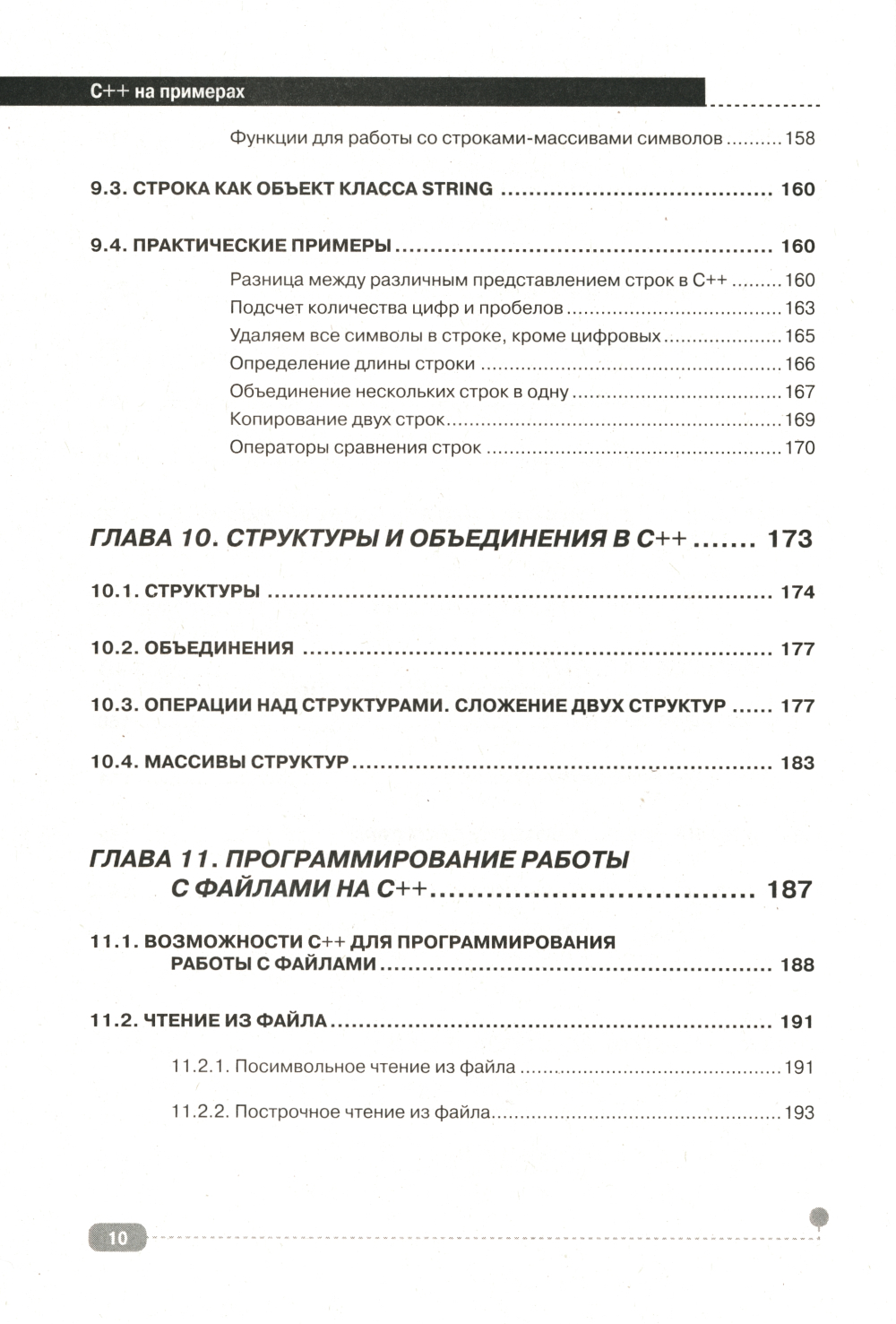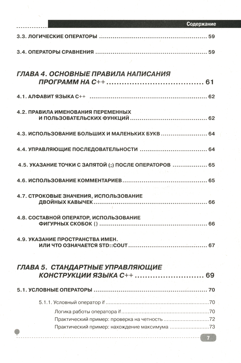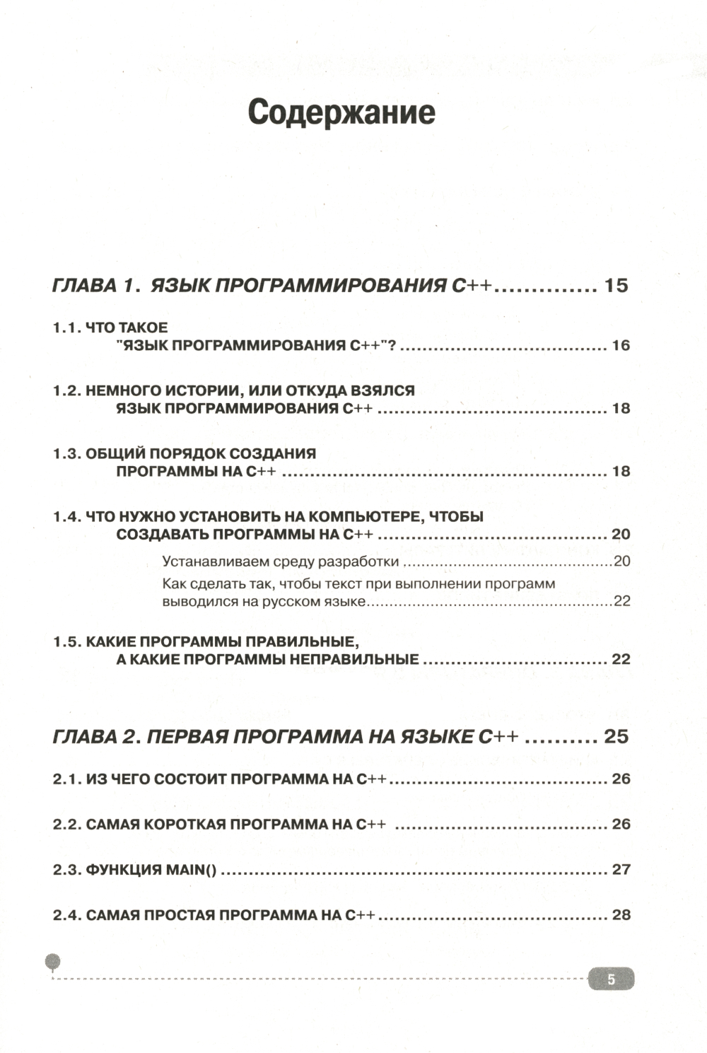 Эта книга является превосходным учебным пособием для изучения языка программирования С++ на примерах. В книге рассмотрена базовая теоретическая часть языка С++, позволяющая ориентироваться в языке и создавать свои программы: типы, функции, операторы, логические конструкции, массивы, указатели, структуры, работа с файлами, объектно-ориентированное программирование. Отдельное внимание уделено программированию различных алгоритмов. В книге используется большое количество примеров с подробным анализом кода: от простых приложений для вывода текста на экран и проведения вычислений до клиент-серверного приложения. Будет полезна как начинающим программистам, студентам, так и всем, кто хочет быстро начать программировать на С++.| Издательство | Наука и техника |