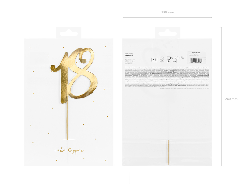 Cake topper ''18'', gold, 20.5cm