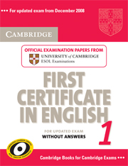 Cambridge University Press is the only official publisher of past papers from Cambridge ESOL. These official papers provide candidates with an excellent opportunity to familiarise themselves with the updated content and format of the FCE examination, to be introduced from December 2008. Attractive colour visual material for Paper 5 is included with each test, enabling students to prepare thoroughly for the paired interview. A 'with answers' edition also contains a comprehensive section of keys, transcripts of the recorded material, a guide to each paper and an insight into marking procedures and grading, with sample answers, making it ideal for self-study.