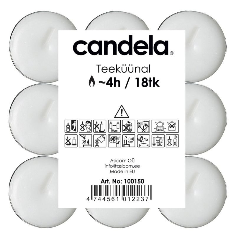 Candela набор 18 шт тёплых чайных свечей - стандартные белые чайные свечи без аромата, создающие мягкое и уютное освещение дома, за столом или во время отдыха. Горят примерно 4 часа, подходят для вечеров, ужинов, декора или аварийного освещения. Цвет свечей - белый.