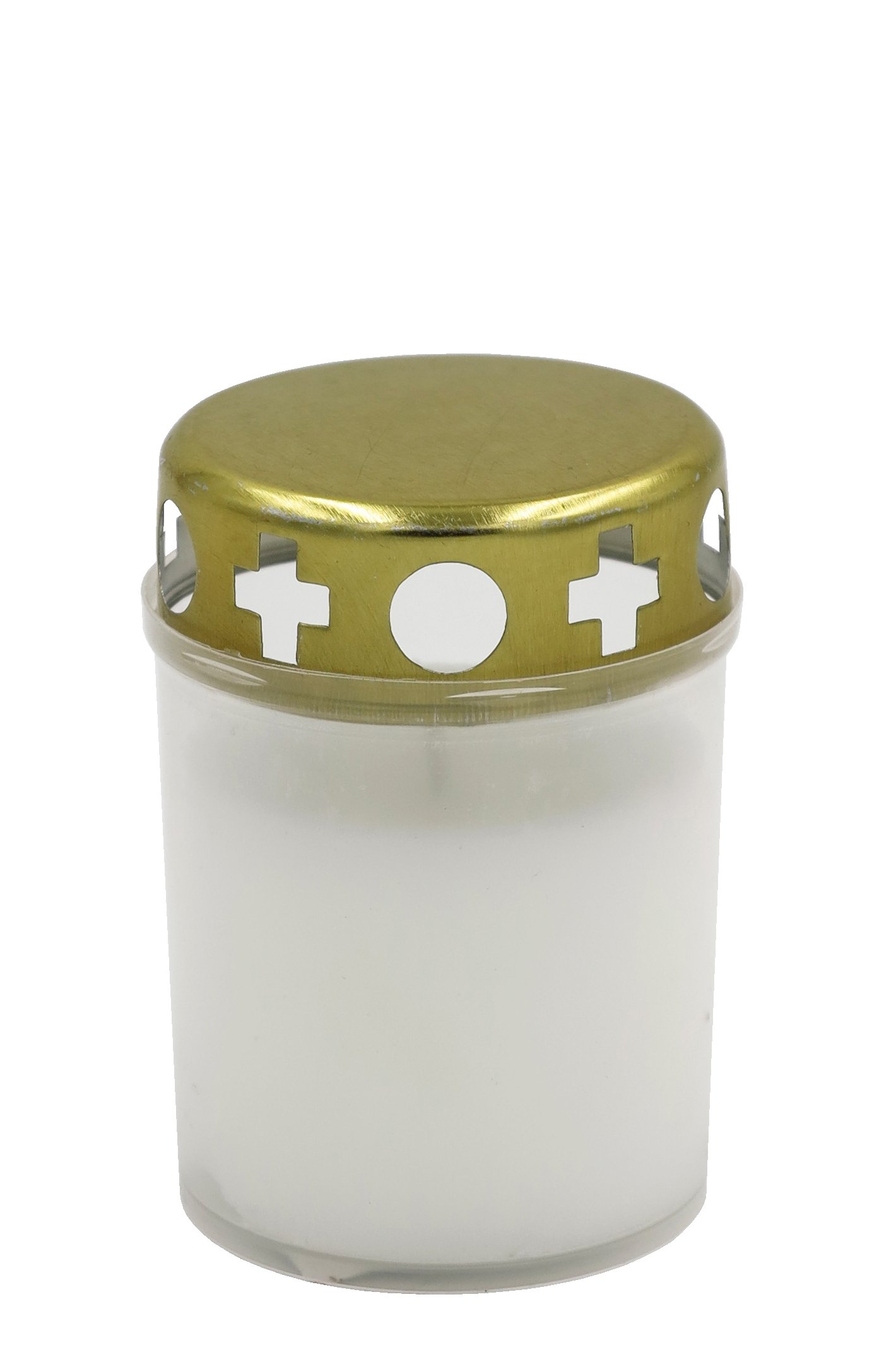 Candela - могильная свеча с крышкой, белая, размер ~ 5,5 × 5,5 × 8 см, время горения ~ 20 часов - компактная уличная свеча с крышкой, обеспечивающая стабильное пламя; хорошо подходит для фонарей, памятников, могил и других мест, где нужен кратковременный, но надёжный свет.
