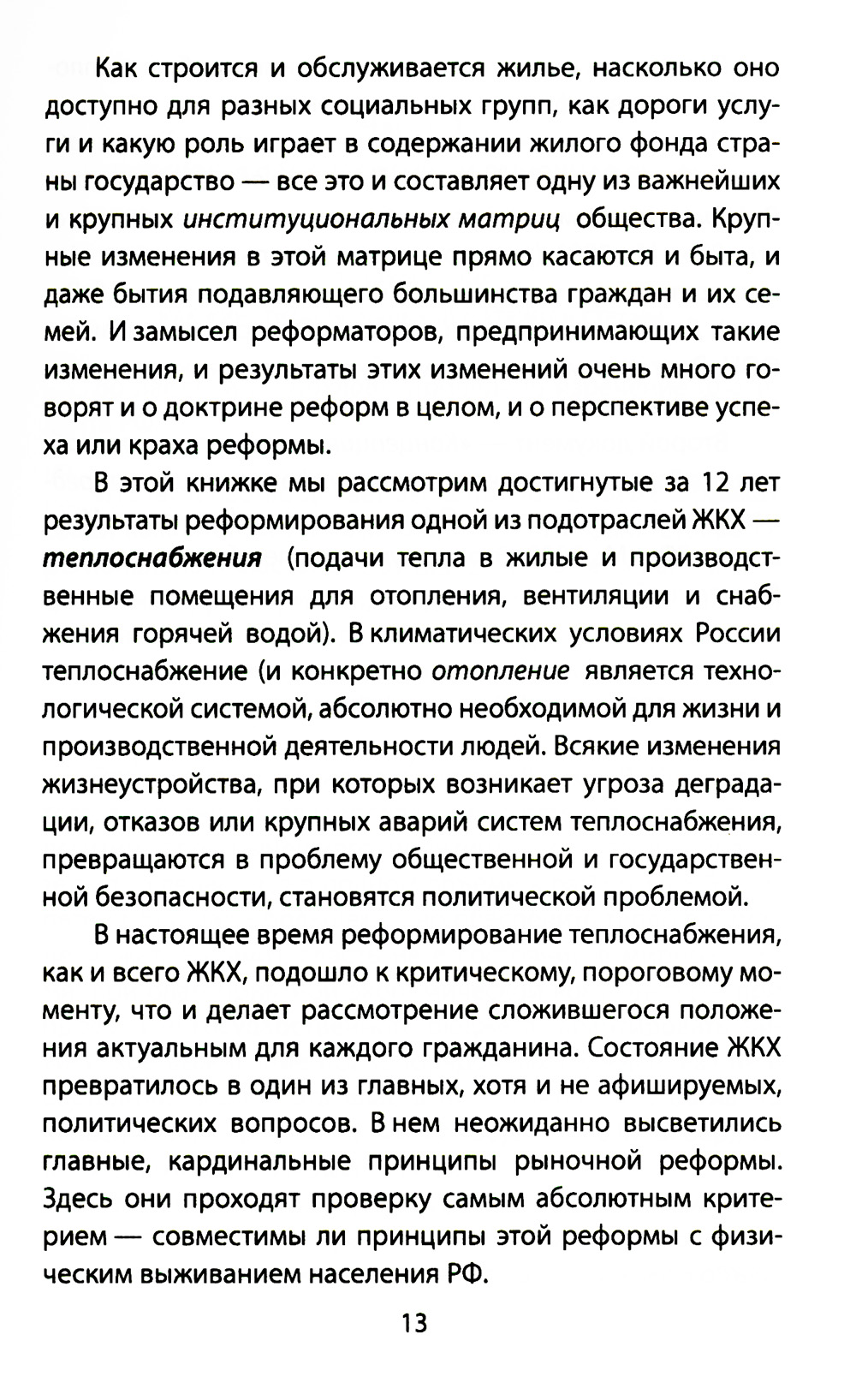 Эта книга была написана двадцать лет назад и сразу же стала бестселлером. В ней известный ученый, социолог и публицист С.Г. Кара-Мурза в соавторстве с С.А. Телегиным показывают состояние жилищно-коммунальной системы России. «Теплоснабжение нашей страны, - пишут они, - жизненно важно для страны и народа. Как и другие такие системы, она складывалась в соответствии с природными, социальными и культурными условиями. В 90-е годы большие технические системы России попытались переделать по западным шаблонам. Это повергло теплоснабжение в кризис, переходящий в катастрофу». Используя большое количество фактического материала, авторы доказывают, что массовый отказ отопления стал самым наглядным и жестоким свидетельством краха рыночной реформы в России. К сожалению, за двадцать лет мало что изменилось - каждая зима становится суровым испытанием для российской системы ЖКХ.