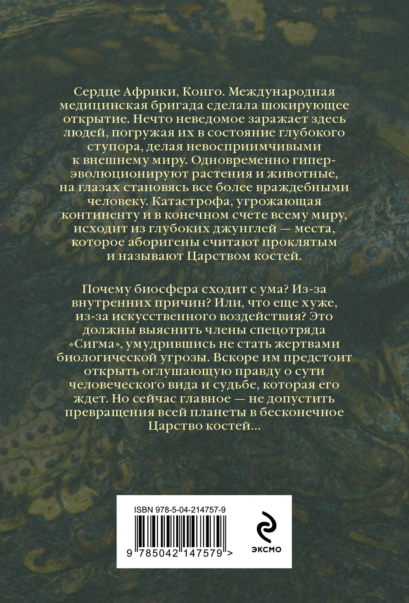 Лучший детектив, триллер и саспенс по версии Amazon. Сердце Африки, Конго. Международная медицинская бригада сделала шокирующее открытие. Нечто неведомое заражает здесь людей, погружая их в состояние глубокого ступора, делая невосприимчивыми к внешнему миру. Одновременно гипер-эволюционируют растения и животные, на глазах становясь все более враждебными человеку. Катастрофа, угрожающая континенту и в конечном счете всему миру, исходит из глубоких джунглей - места, которое аборигены считают проклятым и называют Царством костей. Почему биосфера сходит с ума? Из-за внутренних причин? Или, что еще хуже, из-за искусственного воздействия? Это должны выяснить члены спецотряда «Сигма», умудрившись не стать жертвами биологической угрозы. Вскоре им предстоит открыть оглушающую правду о сути человеческого вида и судьбе, которая его ждет. Но сейчас главное - не допустить превращения всей планеты в бесконечное Царство костей… Джеймс Роллинс - самый продаваемый автор приключенческих триллеров, создатель многочисленных бестселлеров № 1 по версии «New York Times», разошедшихся по всему миру тиражом 20 миллионов экземпляров и переведенных на 40 языков. _________________________________________________________________ «Роллинс - это то, что получается, если поместить Дэна Брауна и Майкла Крайтона в адронный коллайдер». - New York Times «Роллинс - безусловный лидер в том жанре художественной литературы, где сюжет строится на современном научном поиске тайных истин в останках погибших цивилизций». - Wall Street Journal| Издательство | ООО "Издательство "Эксмо" |