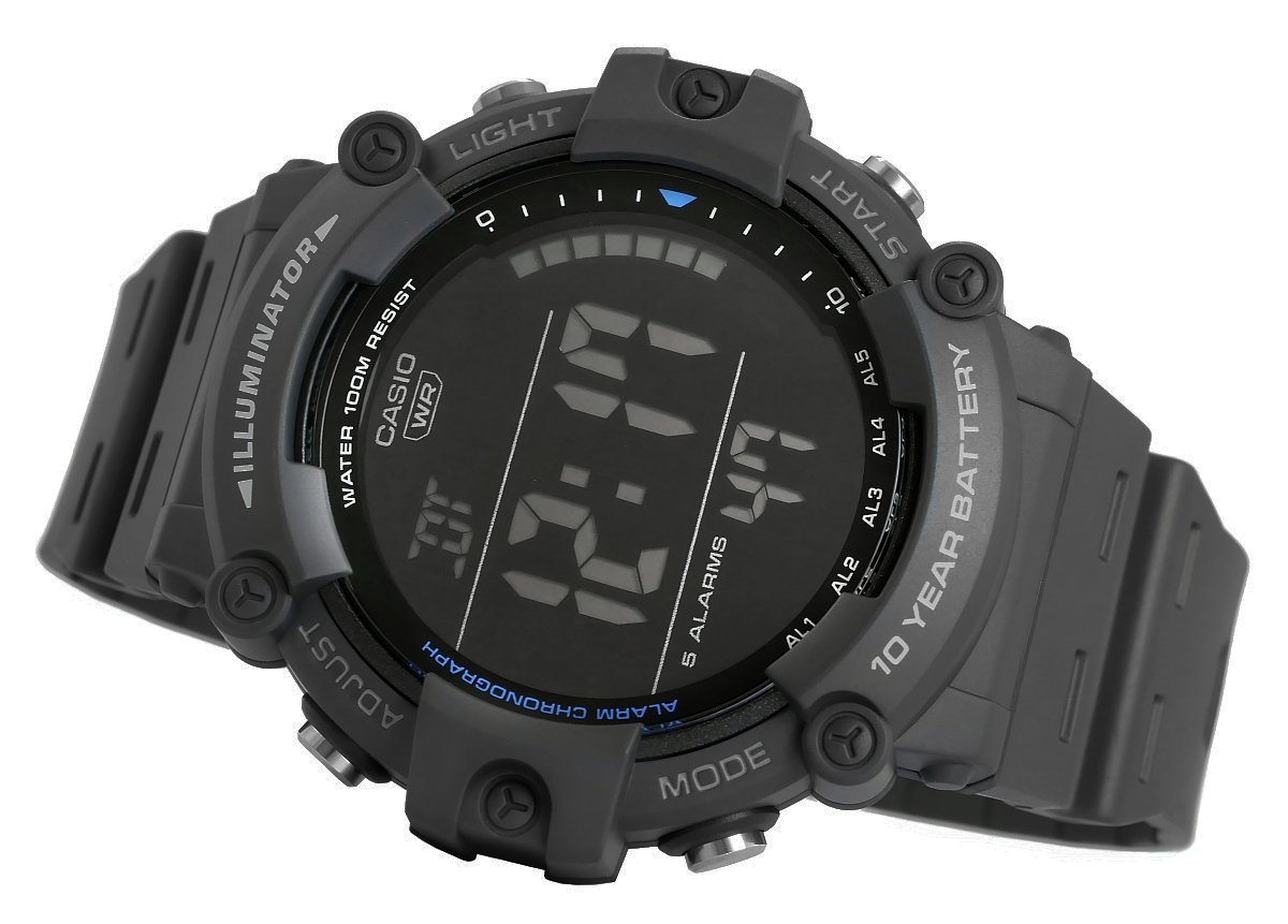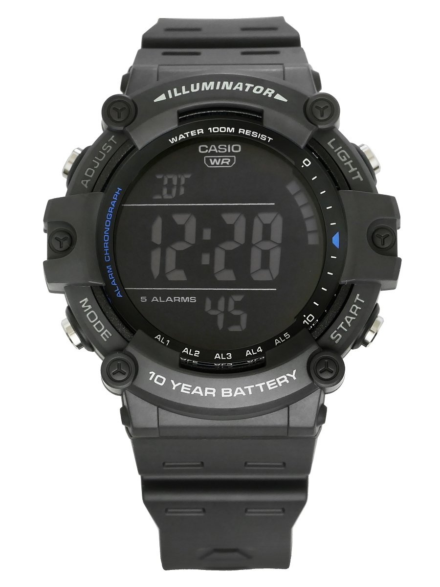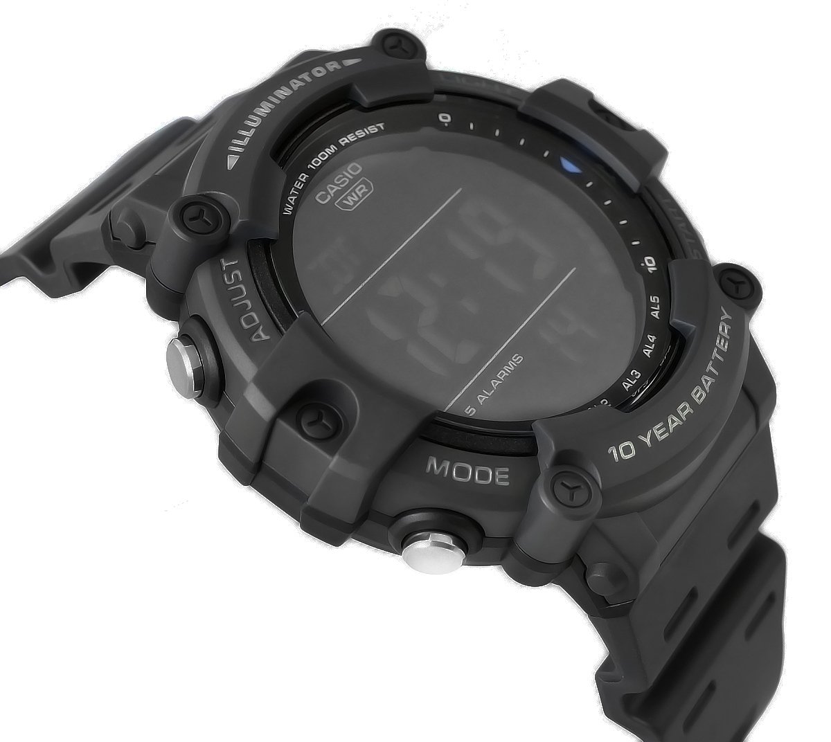 <p>Производитель: Casio<br>Тип: Мужские<br>Механизм: Кварцевые<br>Корпус: Пластиковый<br>Ремешок: Пластиковый<br>Стекло: Hesalite<br>Водонепроницаемость: 100 м<br>Тип механизма: Кварцевые<br>Вес: 57 г<br>Толщина: 16 мм<br>Диаметр: 51 мм<br>Функции: 5 будильников с повтором, дата, автоматический календарь, светодиодная подсветка циферблата, секундомер, часовые пояса, таймер, режим 12/24 часа</p>