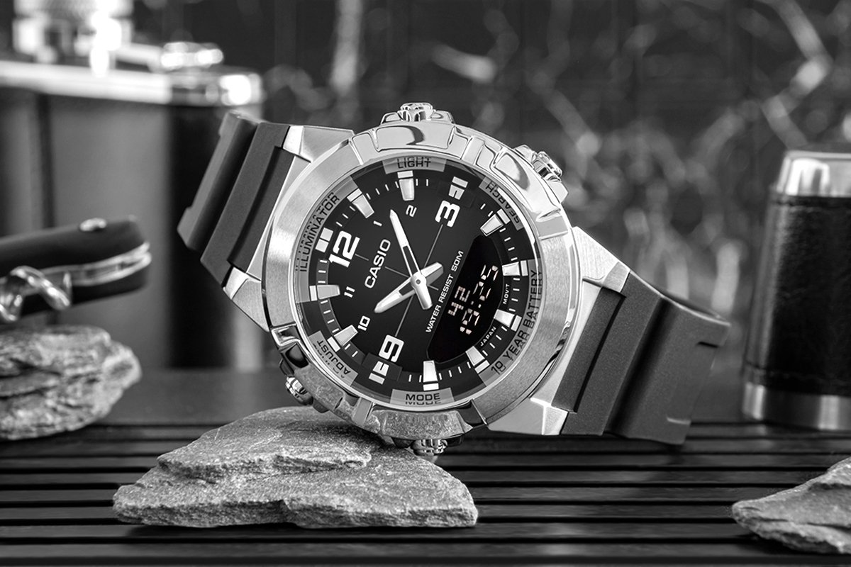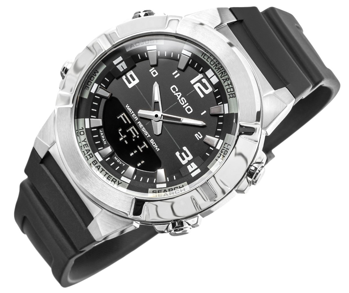 Описание продукта:<br><br /> • Бренд: CASIO<br><br /> • Референс: AMW-870-1AVDF<br><br /> • Механизм: кварцевый, с питанием от батарейки, со стрелками часов и минут<br><br /> • Циферблат: 3D ана-цифровой (аналоговый + цифровой)<br><br /> • Корпус: из нержавеющей стали<br><br /> • Стекло: минеральное<br><br /> • Ремешок: из полимерного материала (смолы)<br><br /> • Стандартные цифровые функции: время (часы, минуты, секунды, AM/PM), месяц, дата, день недели<br><br /> • Подсветка: светодиодная янтарного цвета с функцией Afterglow<br><br /> • Водозащита: 5 bar (50 m) - устойчива к повседневному контакту с водой<br><br /> • Гипоаллергенно: да - не содержит никель<br><br /> • Ресурс батарейки: до 10 лет<br><br /> • Диаметр корпуса: 44 мм<br><br /> • Диаметр циферблата: 34 мм<br><br /> Цветовое решение:<br><br /> • Корпус: серебристый<br><br /> • Циферблат: чёрный с объёмным оформлением<br><br /> • Стрелки: серебристые<br><br /> • Цифровые дисплеи: с контрастной индикацией<br><br /> • Ремешок: чёрный из полимерного материала (смолы)<br><br /> 10‑летний ресурс батарейки - надёжность и комфорт с CASIO.