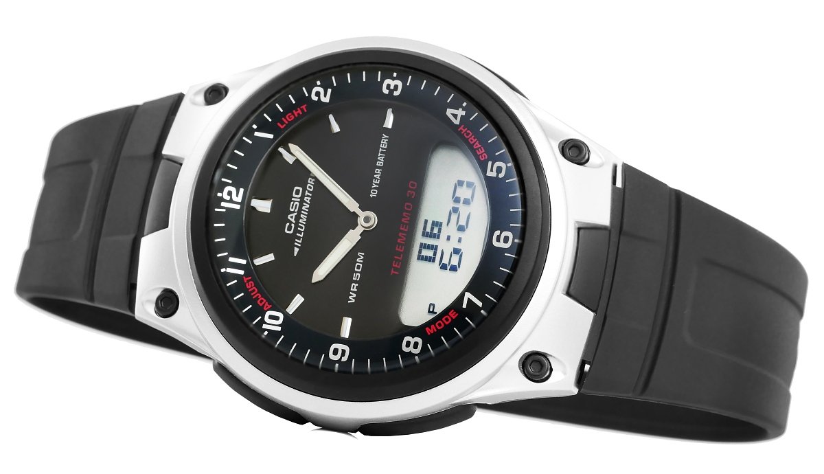 Описание продукта:<br><br /> • Бренд: Casio<br><br /> • Артикул: AW-80-1AVDF<br><br /> • Модель: Dual<br><br /> • Механизм: кварцевый<br><br /> • Циферблат: аналогово-цифровой (ana-digi)<br><br /> • Корпус: пластик<br><br /> • Стекло: акриловое<br><br /> • Ремешок: водонепроницаемый полипропилен<br><br /> • Особенности: люминесцентные стрелки Neobrite<br><br /> • Водозащита: 50 м (5 бар)<br><br /> • Гипоаллергенно: да - не содержит никель<br><br /> • Корпус: 40 мм<br><br /> • Циферблат: 31 мм<br><br /> • Толщина: 13 мм<br><br /> • Ширина ремешка: 23 мм<br><br /> • Охват запястья: макс. 220 мм<br><br /> Цветовое решение:<br><br /> • Корпус: чёрный и серебристый<br><br /> • Циферблат: чёрный<br><br /> • Часовые метки: белые<br><br /> • Стрелки: серебристые с люминесцентным покрытием<br><br /> • Ремешок: чёрный<br><br /> • Застёжка: чёрная<br><br /> Ремешок удобный и лёгкий, поэтому часы комфортно носить весь день, не ощущая тяжести на запястье.