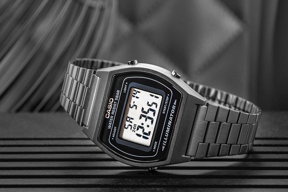 Описание продукта:<br><br /> • Бренд: Casio<br><br /> • Коллекция: Vintage<br><br /> • Модель: B640WB-1ADF<br><br /> • Тип: унисекс<br><br /> • Механизм: точный кварцевый, на батарейке<br><br /> • Индикация: цифровая<br><br /> • Корпус: прямоугольный, пластиковый (resin)<br><br /> • Браслет: браслет из нержавеющей стали<br><br /> • Стекло: минеральное, устойчивое к царапинам<br><br /> • Подсветка: LED<br><br /> • Функции: время, календарь, будильник, секундомер, 12/24‑часовой формат<br><br /> • Водозащита: 5 бар - подходит для повседневного ношения, защита от брызг<br><br /> • Гипоаллергенно: да - не содержит никель, безопасно для кожи<br><br /> • Срок службы батарейки: около 3 лет<br><br /> Цветовое решение:<br><br /> • Корпус: тёмный (чёрный/тёмно‑серый)<br><br /> • Дисплей: с тёмным фоном<br><br /> • Браслет: нержавеющая сталь тёмного цвета
