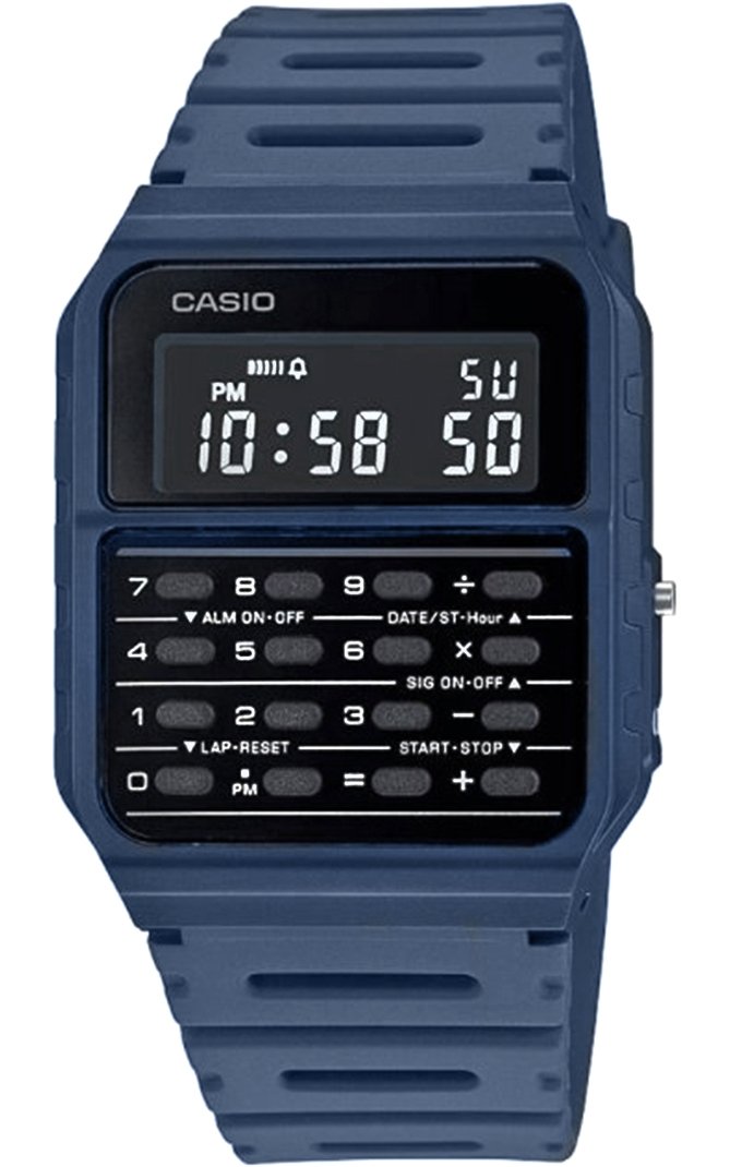 CASIO CA-53W - культовые часы, сочетающие в себе ретро-дизайн и функциональность, что делает их выбором для людей, ценящих практичность. Встроенный 8-значный калькулятор Casio CA-53W - отличное решение для людей, которые ценят скорость и удобство в повседневных расчетах. благодаря функциям сложения, вычитания, умножения и деления вы можете выполнять основные математические операции в любой момент, не доставая телефона или традиционного калькулятора. Это инструмент для студентов, бизнесменов и всех, кто каждый день работает с числами. Кнопки удобны в использовании, а расположение позволяет быстро вводить данные.<br /><br /> • Бренд: CASIO.<br /><br /> • Модель: CA-53WF-2BEF<br /><br /> • Механизм: точный кварцевый, с питанием от батарейки.<br /><br /> • Циферблат: ЖК-дисплей с цифровым циферблатом - четкий и функциональный.<br /><br /> • Корпус: Материал смола Смола<br /><br /> • Кристалл: кристалл из смолы, стекло из смолы.<br /><br /> • Ремешок: Материал смола Смола.<br /><br /> • Стандартные функции: часы, минуты, секунды, а/п, год, месяц, число, день.<br /><br /> • Дополнительные функции: секундомер 1/100 секунды, сигнализация, 8-значный калькулятор, двойное время, автоматический календарь.<br /><br /> • И: нет<br /><br /> • Водонепроницаемость: WR (водостойкий).<br /><br /> • Гипоаллергенный: Да, не содержит никеля.<br /><br /> • Срок службы батареи: 5 лет (срок службы батареи 5 лет)<br /><br /> • Корпус: 43,2 × 34,4 мм.<br /><br /> • Толщина: 8,2 мм.<br /><br /> • Ширина ремешка: 18 мм.<br /><br /> • Окружность запястья: 155-225 мм.<br /><br /> • Вес: 25 г.<br /><br /> • Корпус/циферблат/ремешок: темно-синий цвет.<br /><br /> • Цвет фона: черный<br /><br /> • Цвет номера: оранжевый.