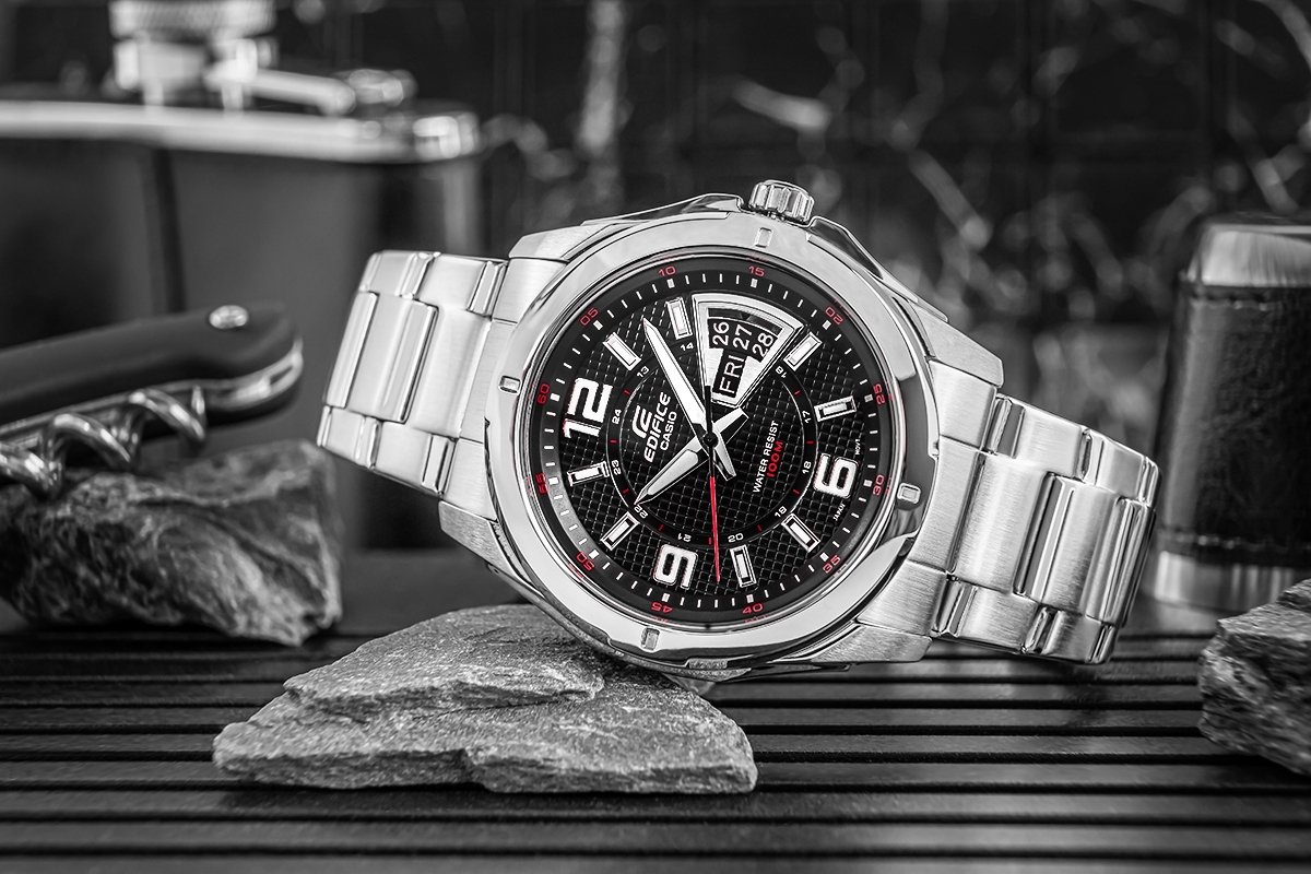 • Бренд: CASIO.<br /><br /> • КОЛЛЕКЦИЯ: ЗДАНИЕ<br /><br /> • Модель: EF-129D-1AVEF<br /><br /> • Механизм: точный кварц с тремя стрелками: часовая, минутная и секундная.<br /><br /> • Циферблат: аналоговый с индикаторами даты и дня недели.<br /><br /> • Корпус: круглый корпус из нержавеющей стали.<br /><br /> • КРИСТАЛЛ: Минеральный, устойчивый к царапинам.<br /><br /> • Браслет: браслет из нержавеющей стали с элегантной отделкой.<br /><br /> • Люминесцентные стрелки и часовые метки + цифры.<br /><br /> • ВОДОСТОЙКОСТЬ: 10 бар - подходит для плавания.<br /><br /> • ГИПОАЛЛЕРГЕН: Да - не содержит никеля и безопасен для кожи.<br /><br /> • Корпус: 49 мм.<br /><br /> • Циферблат: 45 мм.<br /><br /> • Толщина корпуса: 10,4 мм.<br /><br /> • Браслет: ширина 24 мм.<br /><br /> • Окружность запястья: 220 +/- 5 мм - регулируется по размеру и размеру.<br /><br /> • Корпус: серебро<br /><br /> • Циферблат: черный циферблат со структурой из углеродного волокна.<br /><br /> • часовые метки/цифры: люминесцентное серебряное покрытие<br /><br /> • Стрелки: люминесцентное покрытие серебристого цвета.<br /><br /> • Секонд-хэнд: серебро/ред.<br /><br /> • Браслет: серебро, матовое покрытие EDIFICE. Симбиоз, технология и высочайшая точность. Все модели имеют прочный стальной корпус, устойчивое к царапинам минеральное стекло и технологии, которые делают EDIFICE больше, чем просто часы.