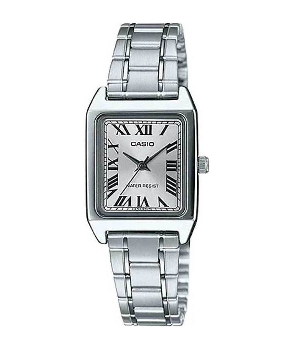 <p data-start="1949" data-end="2525">Часы Casio LTP-V007D-7BUDF это женская аналоговая модель с утончённым дизайном и японским кварцевым механизмом. Прямоугольный корпус из нержавеющей стали с отполированной отделкой, браслет из стали с замком «складная тройная застёжка», а также лаконичный белый циферблат с чёрными римскими цифрами и стрелками (часы, минуты, секунды) создают элегантный образ. Размеры - около <strong data-start="2327" data-end="2347">31 × 22 × 7,5 мм</strong>, вес примерно <strong data-start="2362" data-end="2370">51 г</strong>, что делает часы аккуратными на запястье. Способны выдерживать лёгкие воздействия воды (брызги, небольшой дождь) - подходят для ежедневного использования.</p><br /> <p data-start="2527" data-end="2560"><strong data-start="2527" data-end="2558">Технические характеристики:</strong></p><br /> <ul data-start="2561" data-end="2974"><br /> <li data-start="2561" data-end="2617"><br /> <p data-start="2563" data-end="2617">Механизм: кварц, три стрелки (часы, минуты, секунды)</p><br /> </li><br /> <li data-start="2618" data-end="2652"><br /> <p data-start="2620" data-end="2652">Точность: примерно ±20 сек/мес</p><br /> </li><br /> <li data-start="2653" data-end="2690"><br /> <p data-start="2655" data-end="2690">Размер корпуса: ~31 × 22 × 7,5 мм</p><br /> </li><br /> <li data-start="2691" data-end="2705"><br /> <p data-start="2693" data-end="2705">Вес: ~51 г</p><br /> </li><br /> <li data-start="2706" data-end="2769"><br /> <p data-start="2708" data-end="2769">Материал корпуса: нержавеющая сталь с хромированным безелем</p><br /> </li><br /> <li data-start="2770" data-end="2819"><br /> <p data-start="2772" data-end="2819">Браслет: стальной, с застёжкой тройного сгиба</p><br /> </li><br /> <li data-start="2820" data-end="2843"><br /> <p data-start="2822" data-end="2843">Стекло: минеральное</p><br /> </li><br /> <li data-start="2844" data-end="2910"><br /> <p data-start="2846" data-end="2910">Водозащита: для повседневного использования (например, брызги)</p><br /> </li><br /> <li data-start="2911" data-end="2974"><br /> <p data-start="2913" data-end="2974">Дополнительно: римские цифры, прямоугольный стройный корпус</p><br /> </li><br /> </ul>
