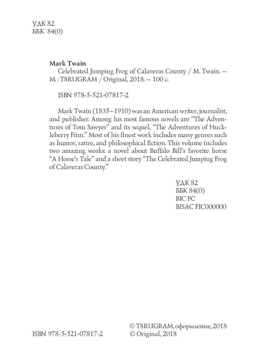 Аннотация: Celebrated Jumping Frog of Calaveras County