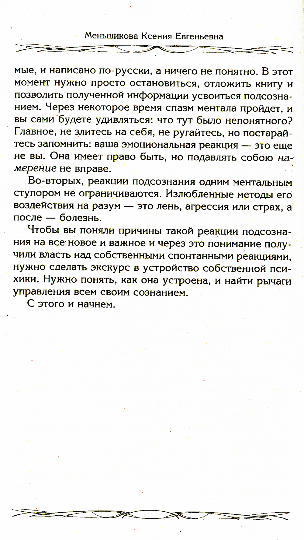 Судьбу человека определяют его ценности. Если у людей одинаковые ценности, то и сценарий их жизни будет очень похож. Но если такая жизнь не нравится и перспектива повторить судьбу родителей тоже не радует, можно ли что-то изменить? Можно! Для этого нужно переписать ценности и растворить события, которые прописаны в жизни как обязательные. Сделать это трудно, но реально. Ключ - в правильной методике. Он заключается в специальной перезаписи лежащих в сознании, но скрытых от своего владельца связей между ценностями и целями. Такие связи - тайные программы: они есть, просто вы о них не знаете. Если все сделать правильно, то жизнь будущего освобождается от обязательств идти по прописанному сценарию и исправлять своей жизнью ошибки родителей. Снимается жесткое влияние системы. Данная книга написана по результатам работы, которая проводится в Школе Меньшиковой по магическому развитию сознания. Все ученики, которые изменили себя через этот метод, достигли серьезных успехов в жизни, полностью или частично переписав свою судьбу и изменив карму как программу построения событий.| Издательство | Центрполиграф |