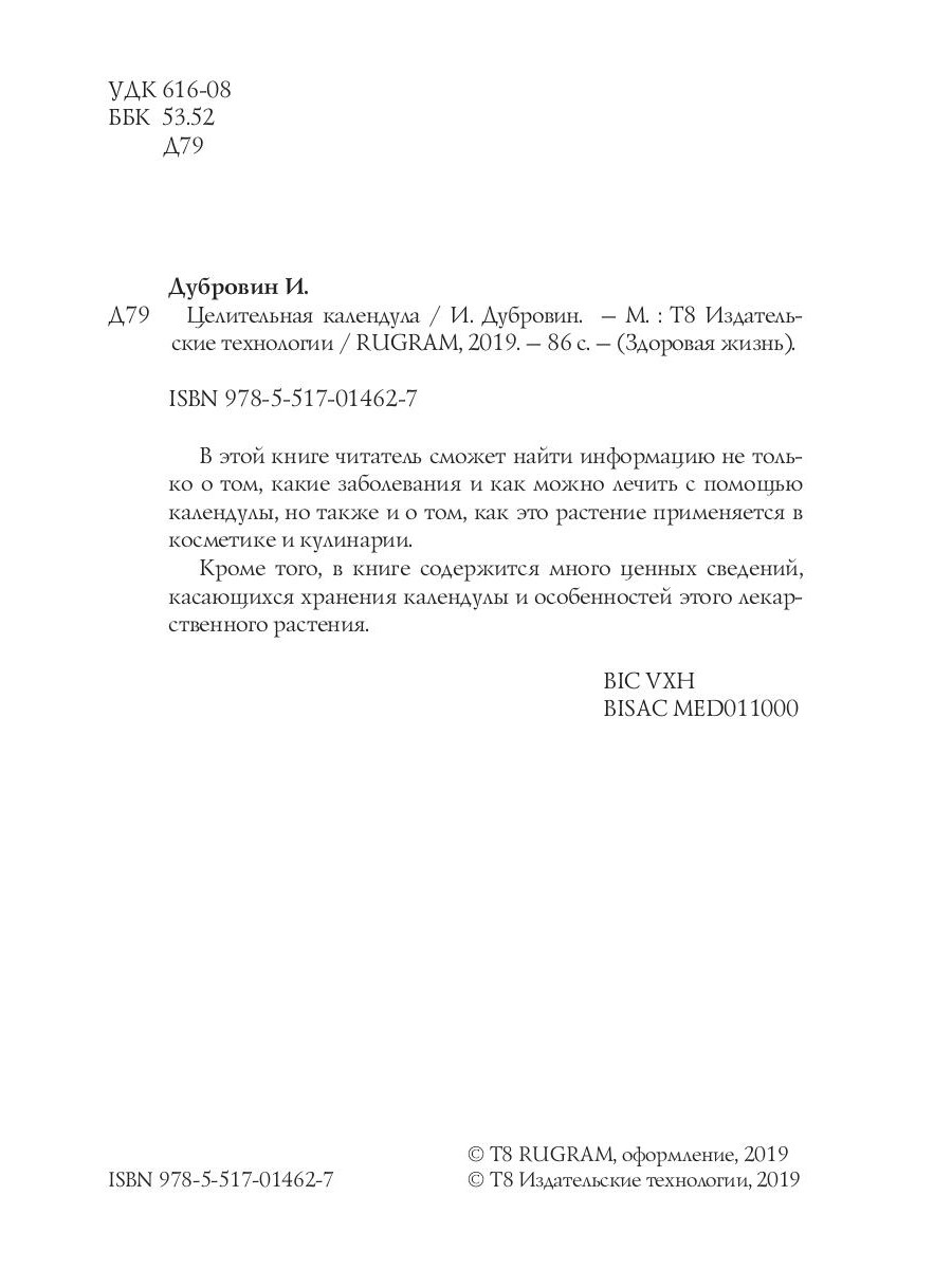 В этой книге читатель сможет найти информацию не только о том, какие заболевания и как можно лечить с помощью календулы, но также и о том, как это растение применяется в косметике и кулинарии. Кроме того, в книге содержится много ценных сведений, касающихся хранения календулы и особенностей этого лекарственного растения.| Издательство | Т8 RUGRAM |